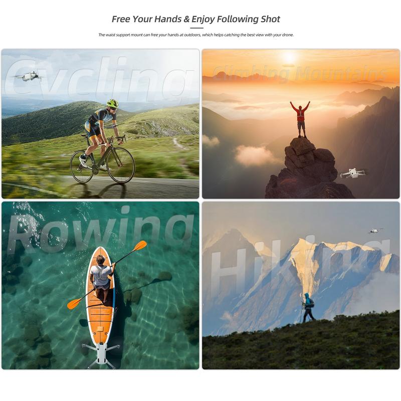 1. Free Your Hands & Enjoy Following Shot. The waist support mount can free your hands at outdoors, which helps catching the best view with your drone.