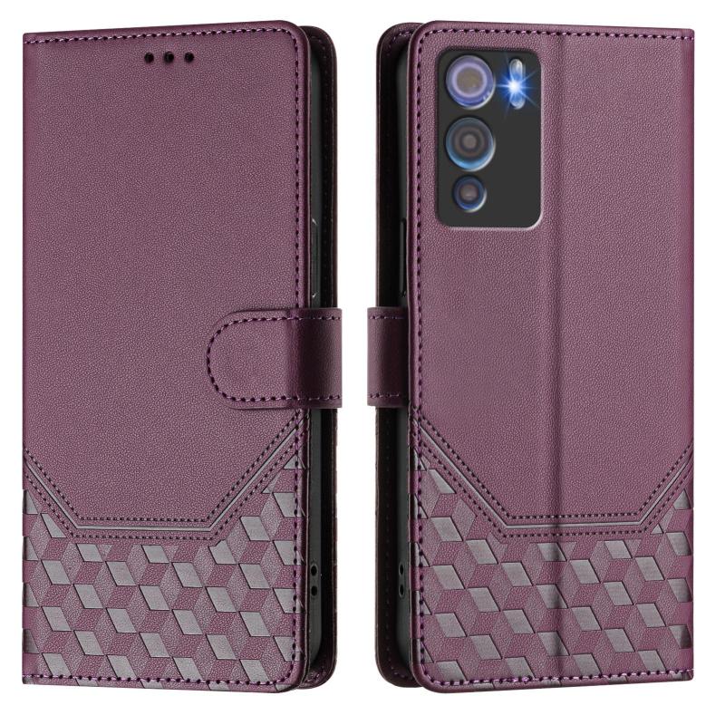 For Doogee N60 Pro Honeycomb Embossing RFID Leather Phone Case(Violet)