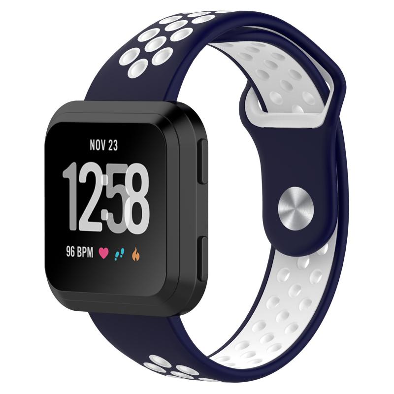 For Fitbit Versa Two-tone Silicone Watch Band(Dark Blue + White)