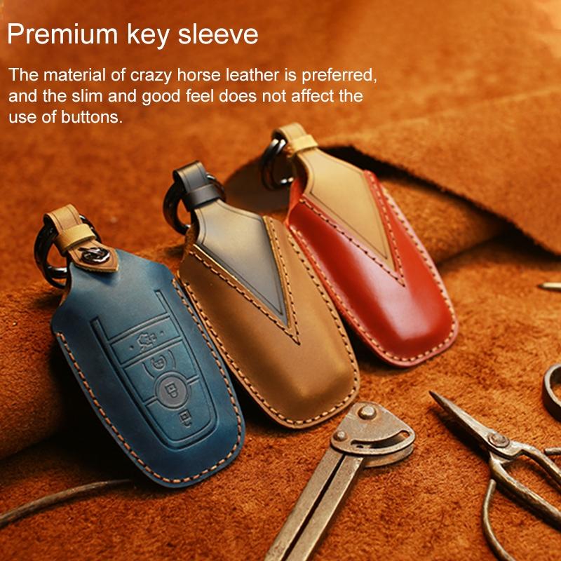 For Ford Car Cowhide Leather Key Protective Cover Key Case, Four Keys Version (Red)