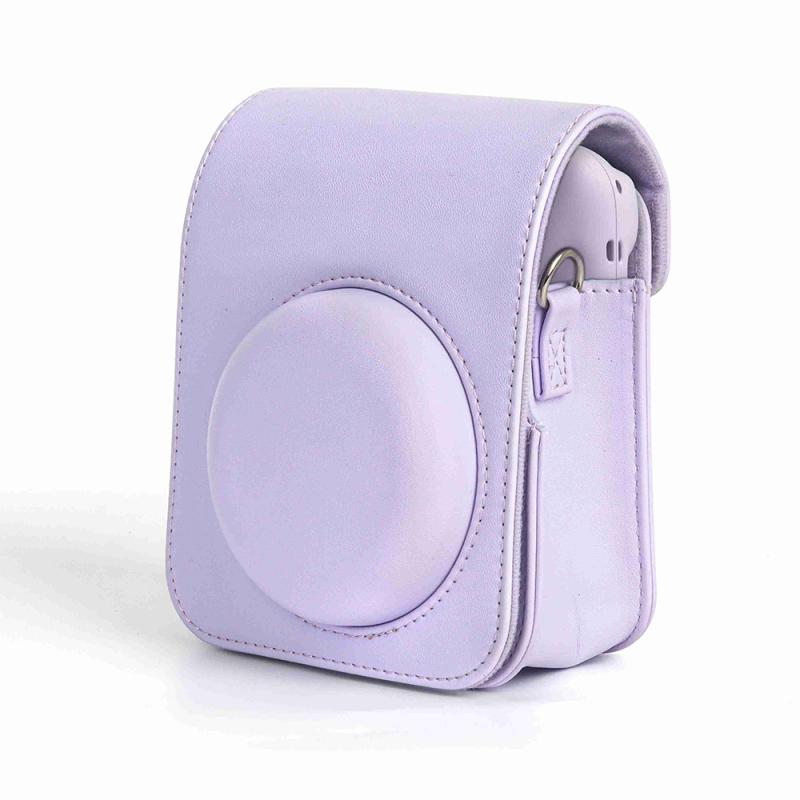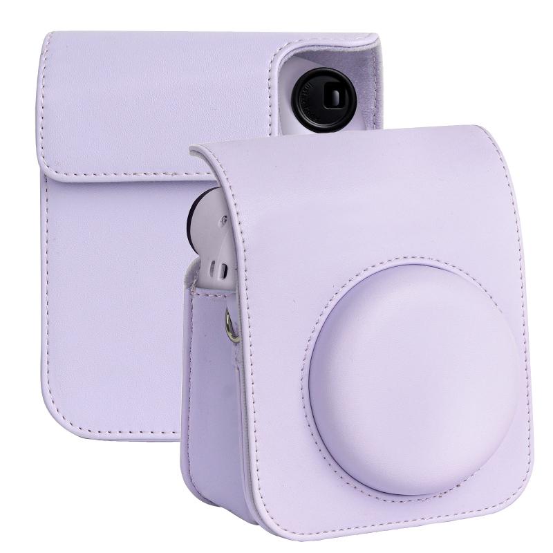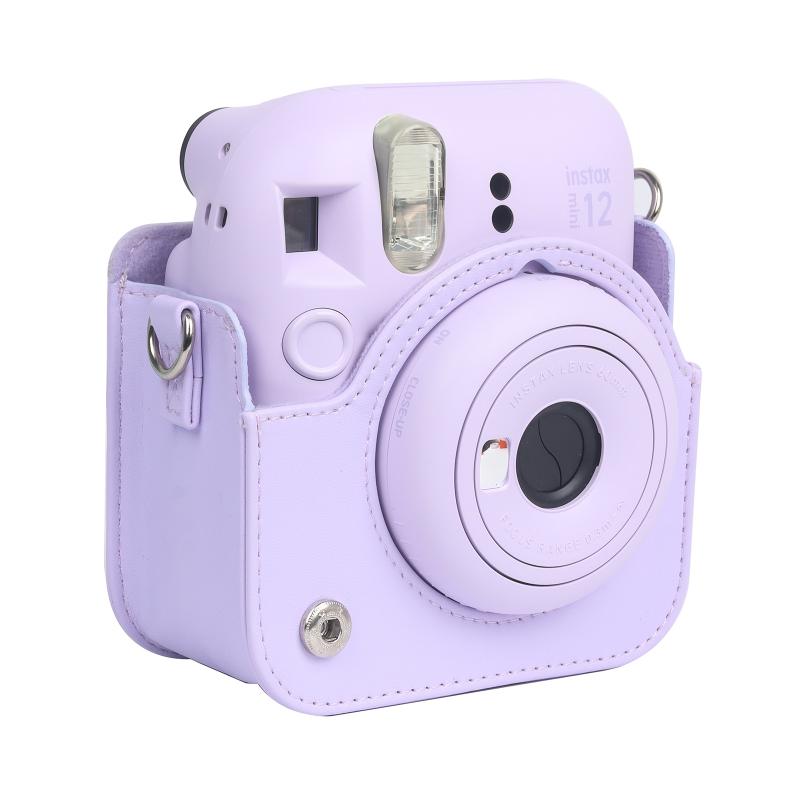 For FUJIFILM instax mini 12 Full Body Leather Case Camera Bag with Strap (Purple)