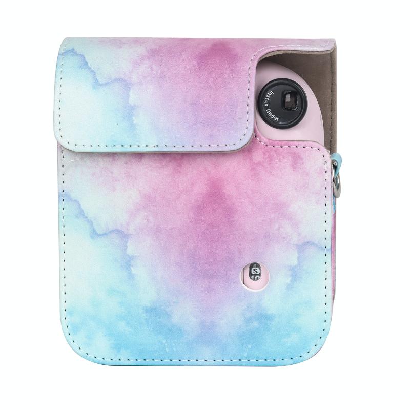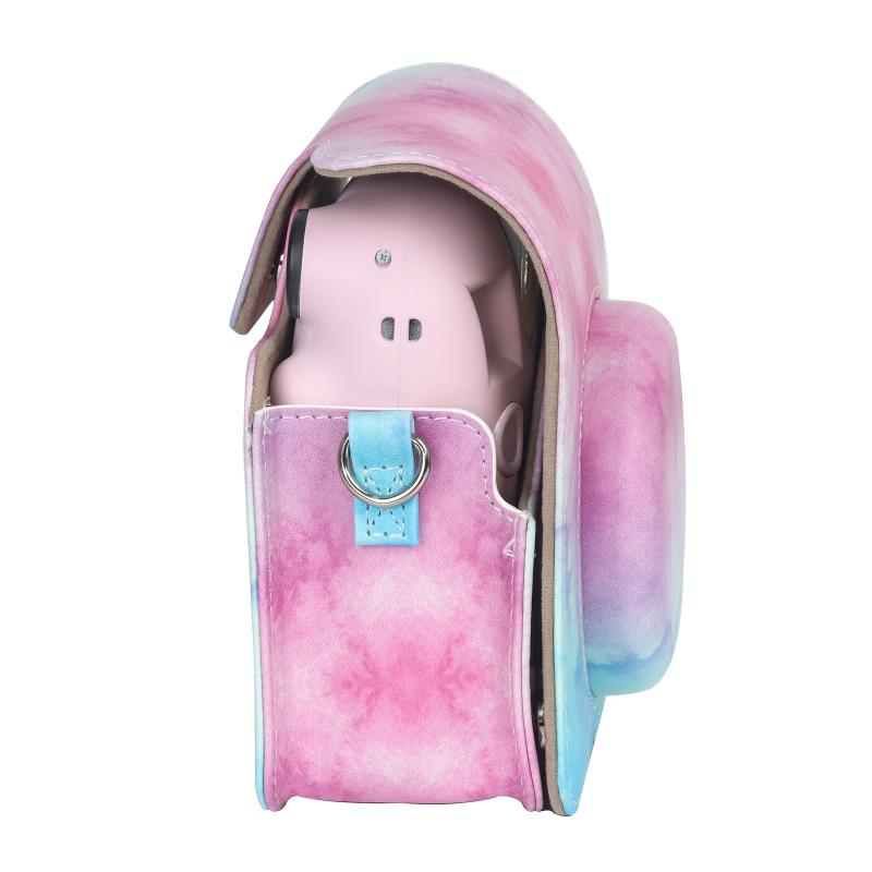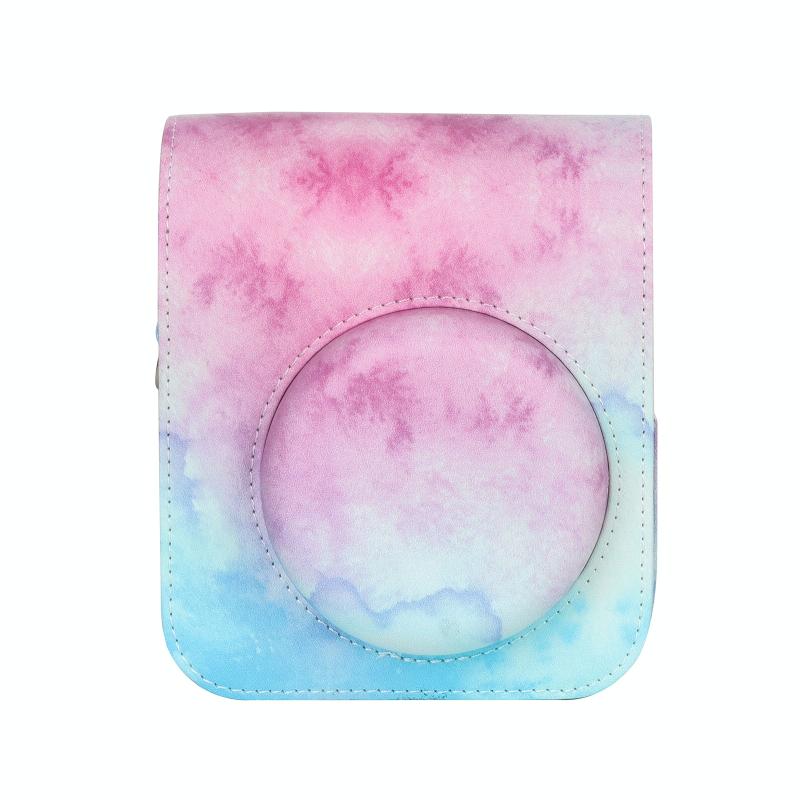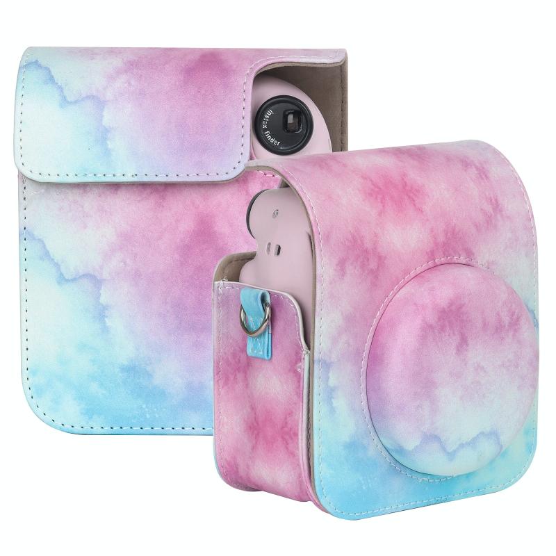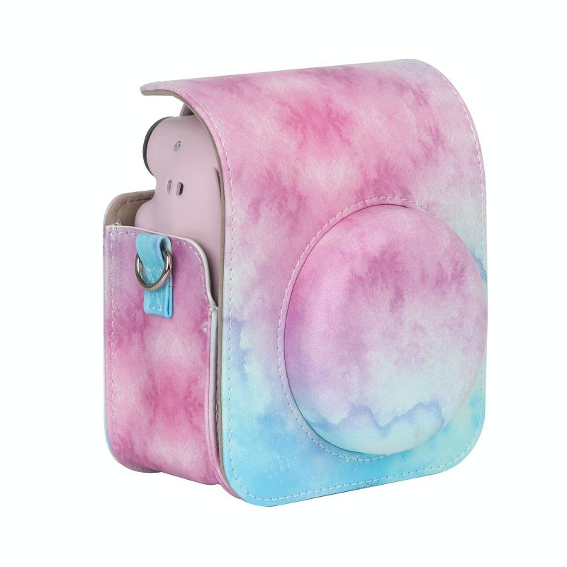 For FUJIFILM instax mini 12 Painted Full Body Leather Case Camera Bag with Strap(Blue Pink)(Black)