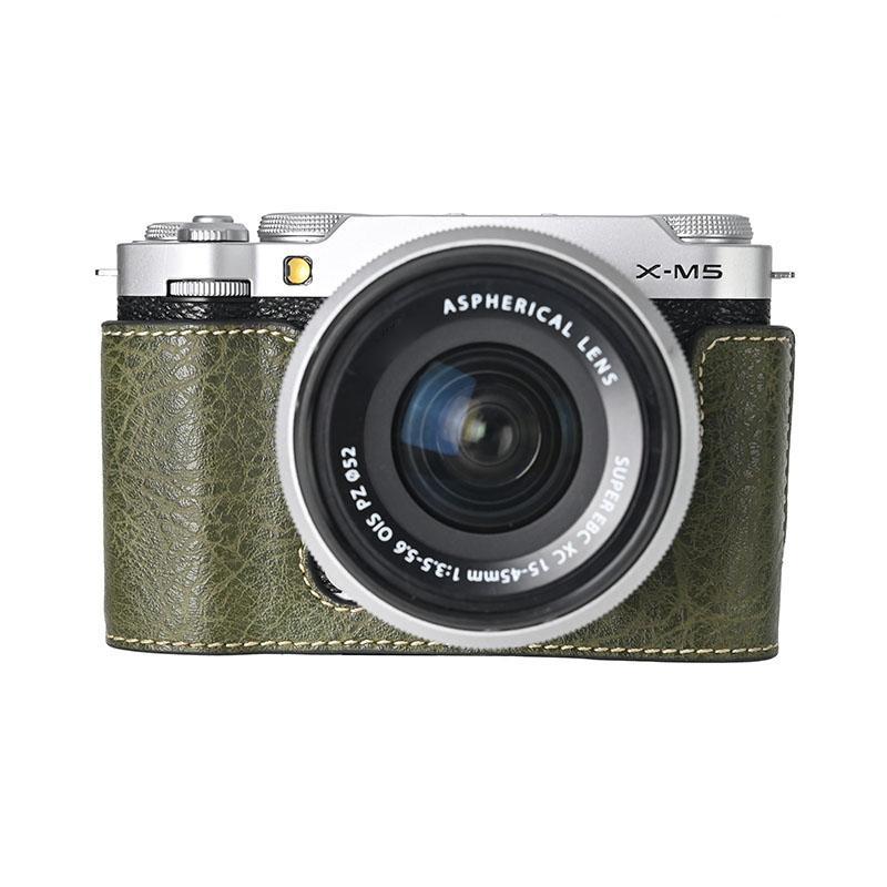For FUJIFILM X-M5 Retro Litchi Texture Leather Full Body Camera Case Bag with Strap(Green)