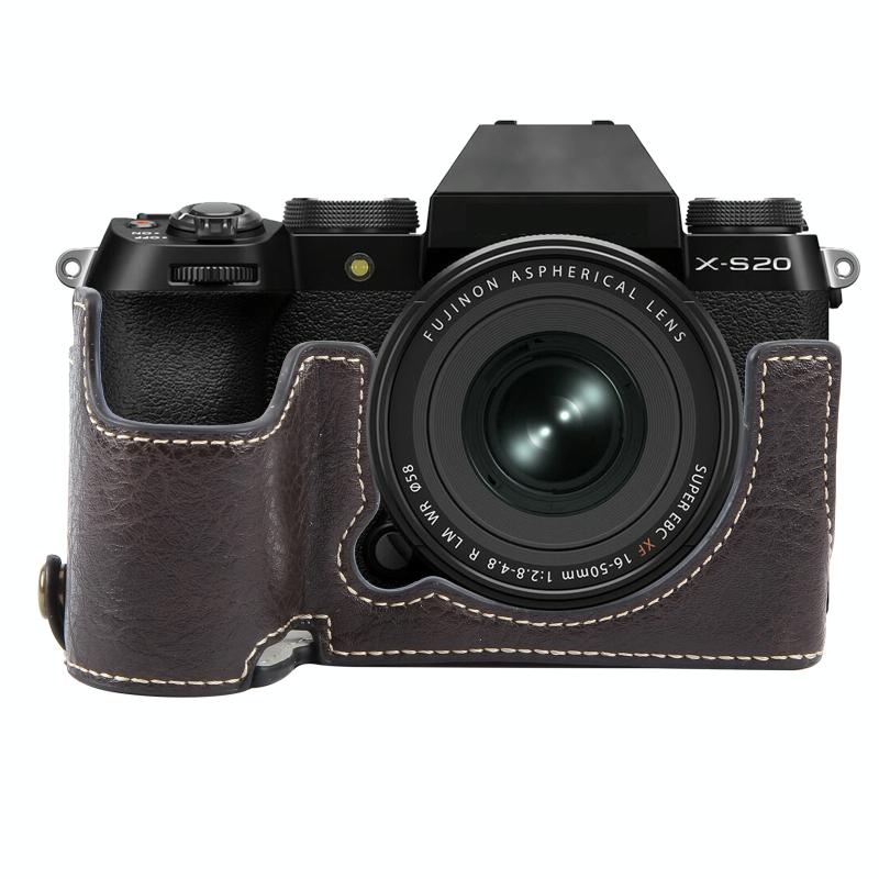 For FUJIFILM X-S20 Buffalo Texture PU Leather Camera Half Case Base(Dark Coffee)