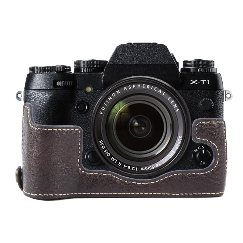 For FUJIFILM X-T1 Buffalo Texture PU Leather Camera Half Case Base(Dark Coffee)