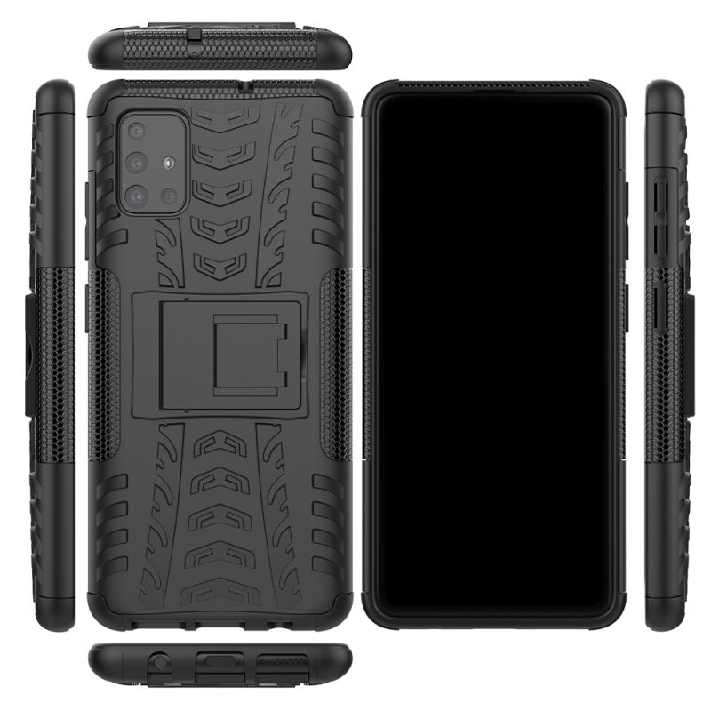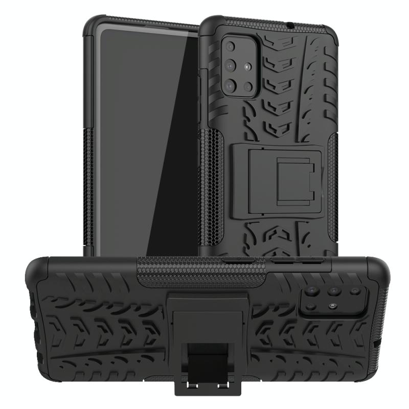 For Galaxy A51 Tire Texture Shockproof TPU+PC Protective Case with Holder(Black)
