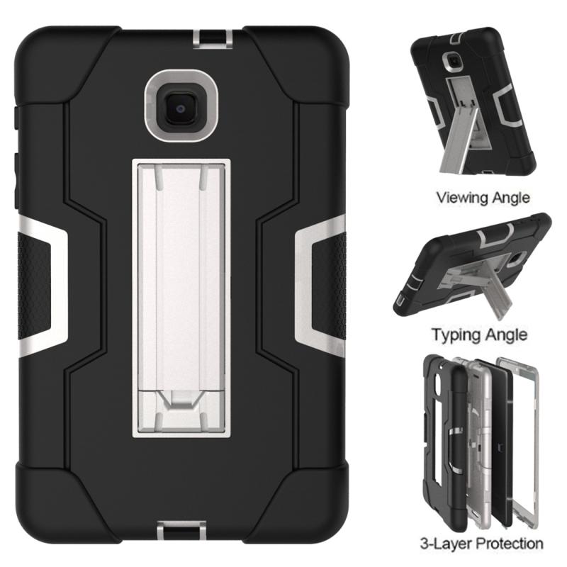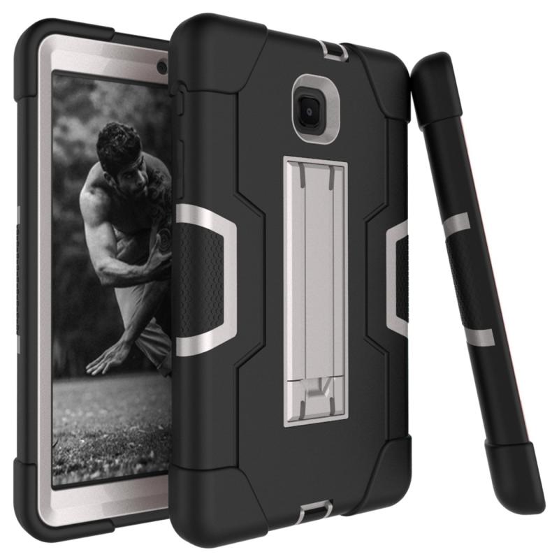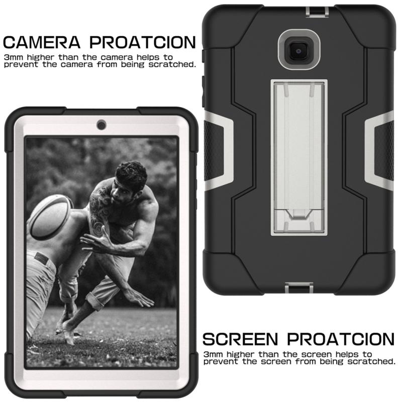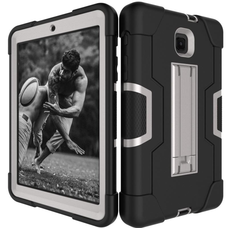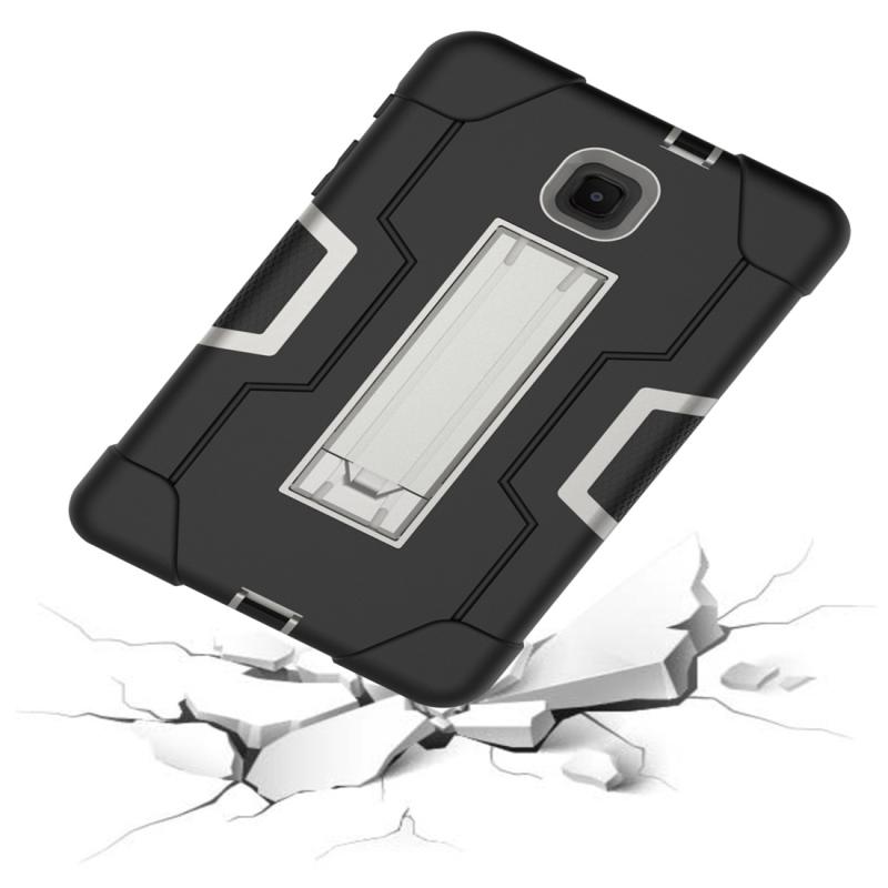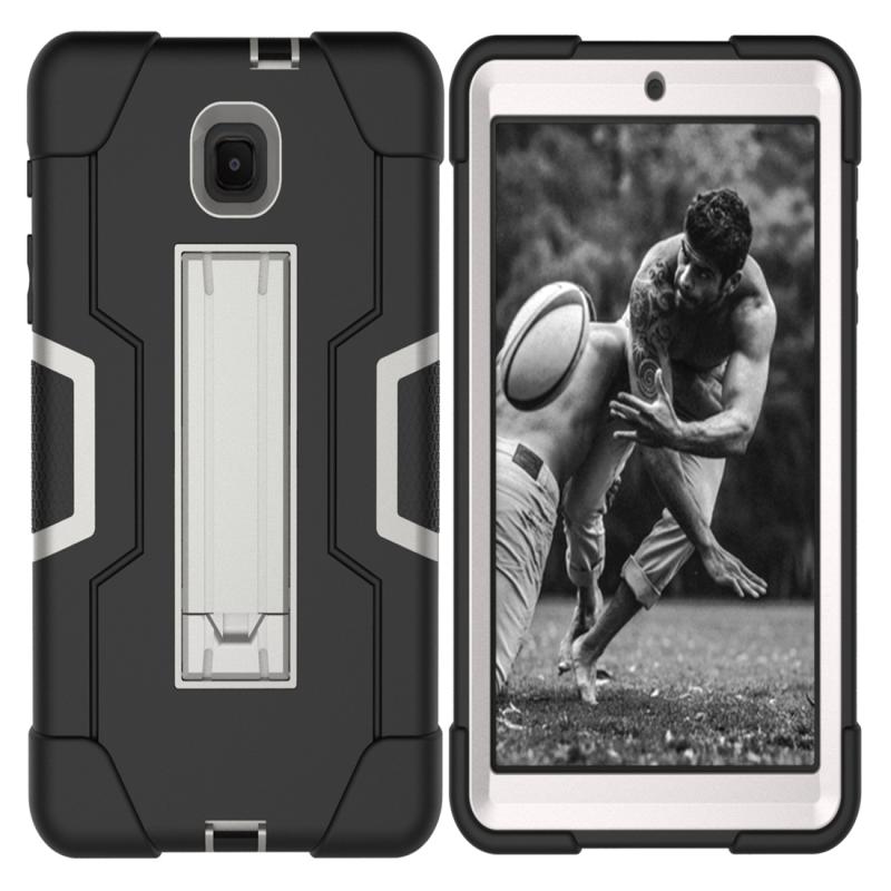 For Galaxy Tab A 8.0 (2018) T387 Contrast Color Silicone + PC Combination Case with Holder(Black + Grey)