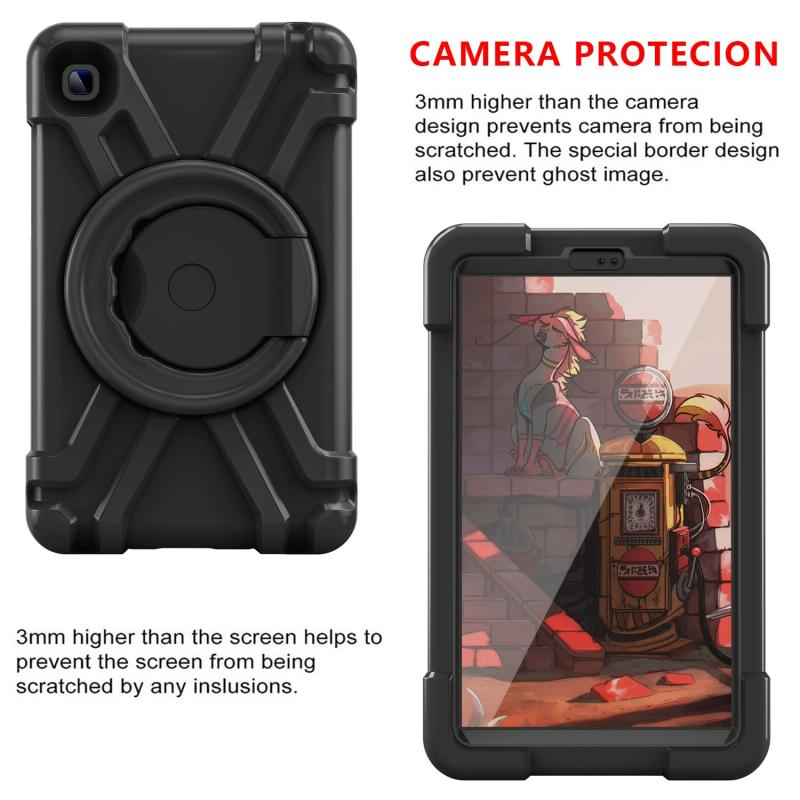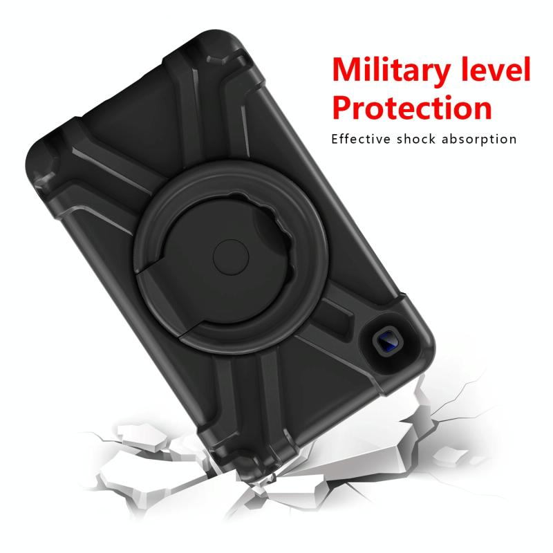 For Galaxy Tab A7 Lite T220/T225 PC + Silicone Shockproof Combination Case with 360 Degree Rotating Holder & Handle(Black+Black)