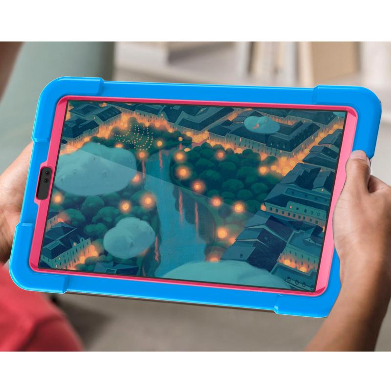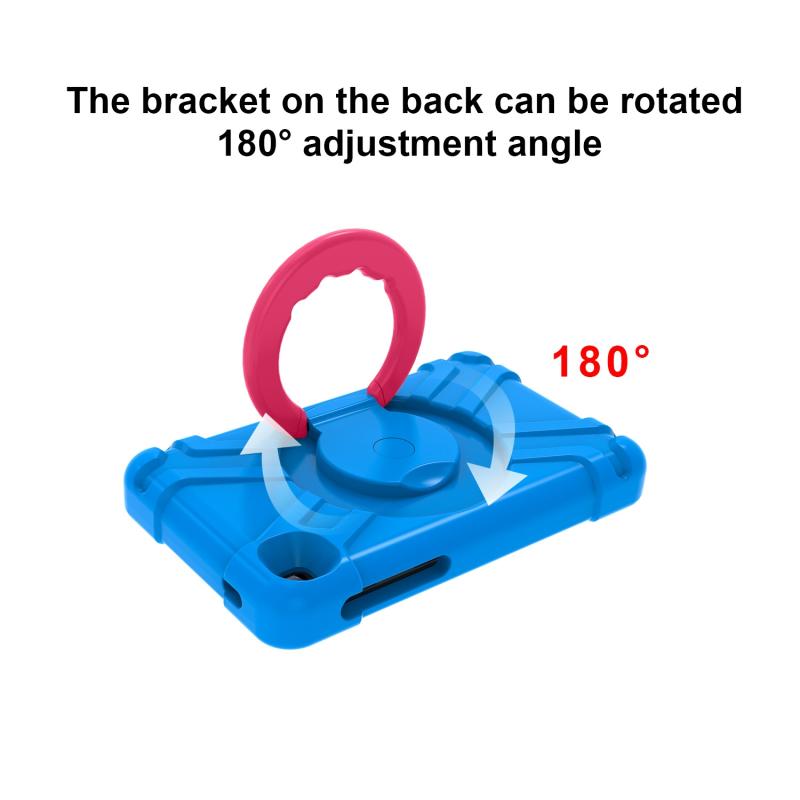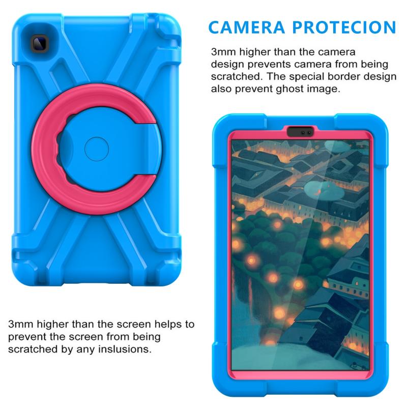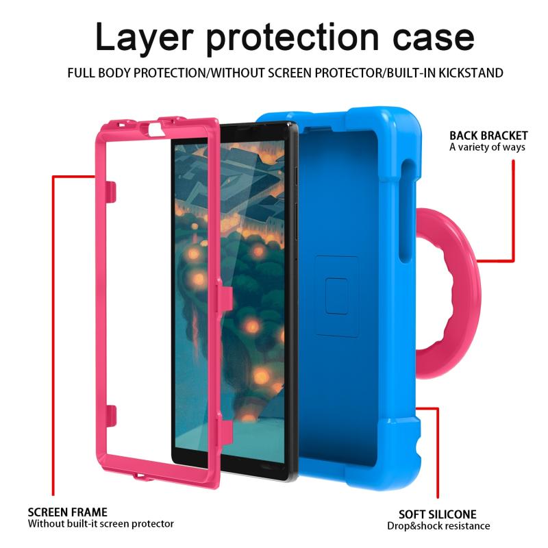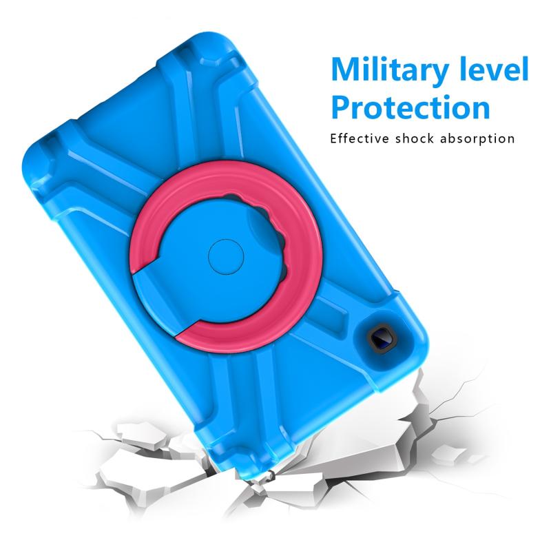 For Galaxy Tab A7 Lite T220/T225 PC + Silicone Shockproof Combination Case with 360 Degree Rotating Holder & Handle(Blue+Rose Red)