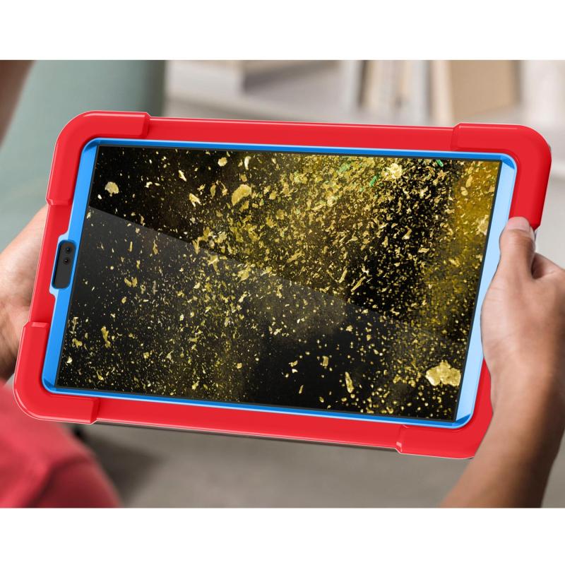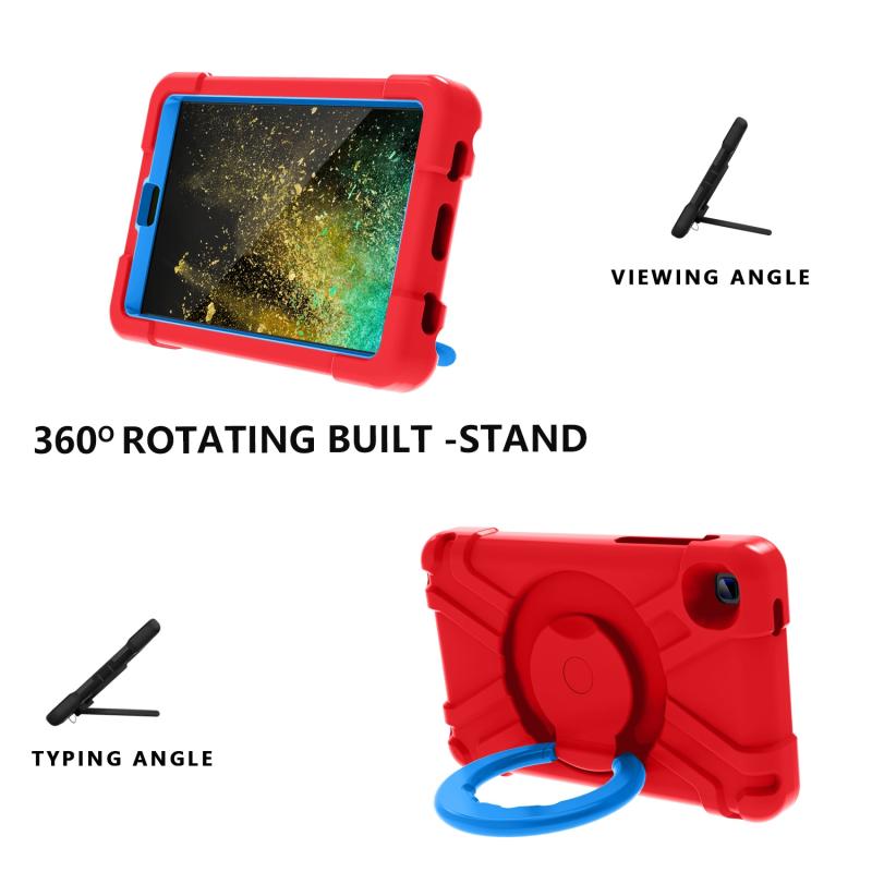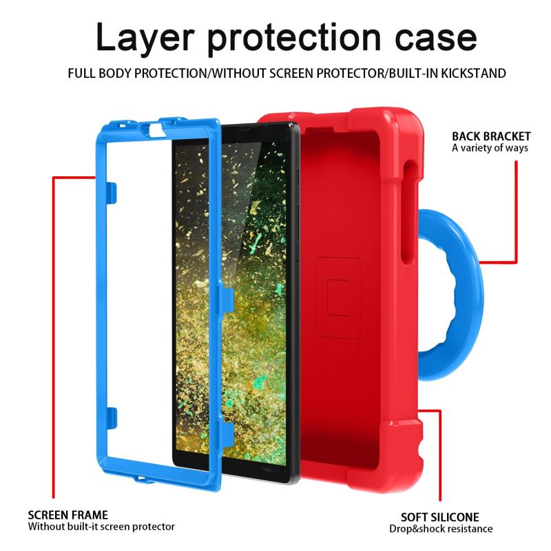 For Galaxy Tab A7 Lite T220/T225 PC + Silicone Shockproof Combination Case with 360 Degree Rotating Holder & Handle(Red+Blue)