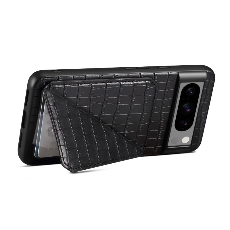 For Google Pixel 6 Denior Crocodile Texture Holder Electroplating Phone Case(Black) (Denior)
