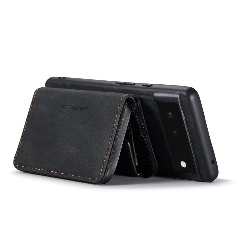 For Google Pixel 6 JEEHOOD Magnetic Zipper Horizontal Flip Phone Leather Case(Black) (JEEHOOD)