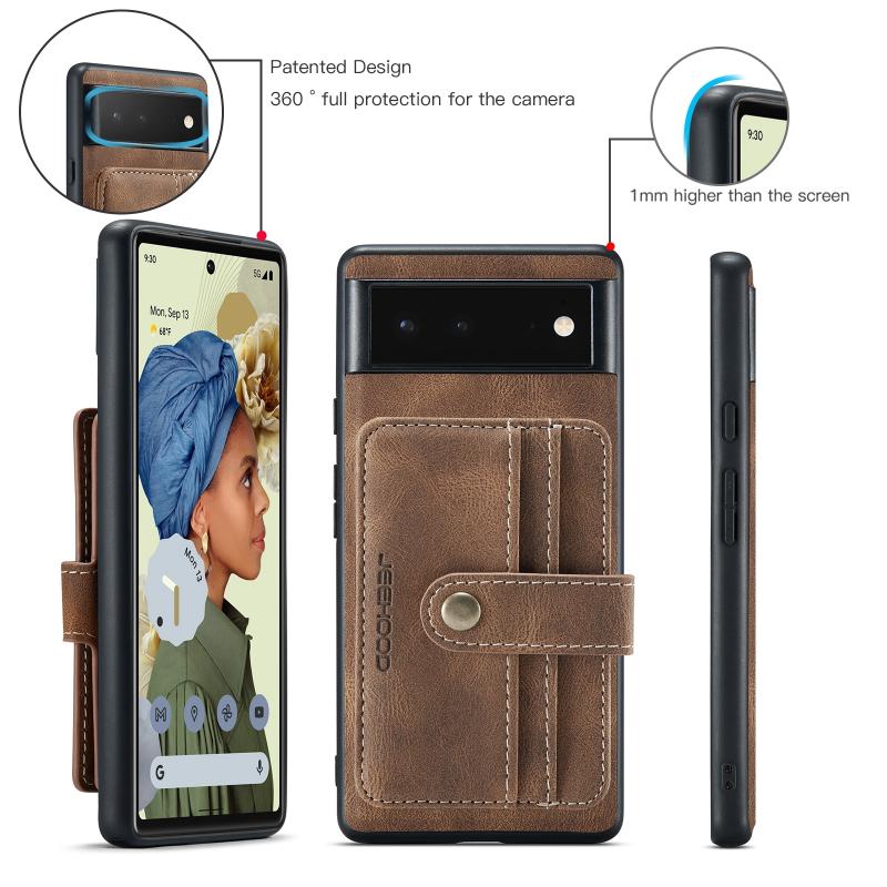For Google Pixel 6 JEEHOOD RFID Blocking Anti-Theft Wallet Phone Case(Brown) (JEEHOOD)