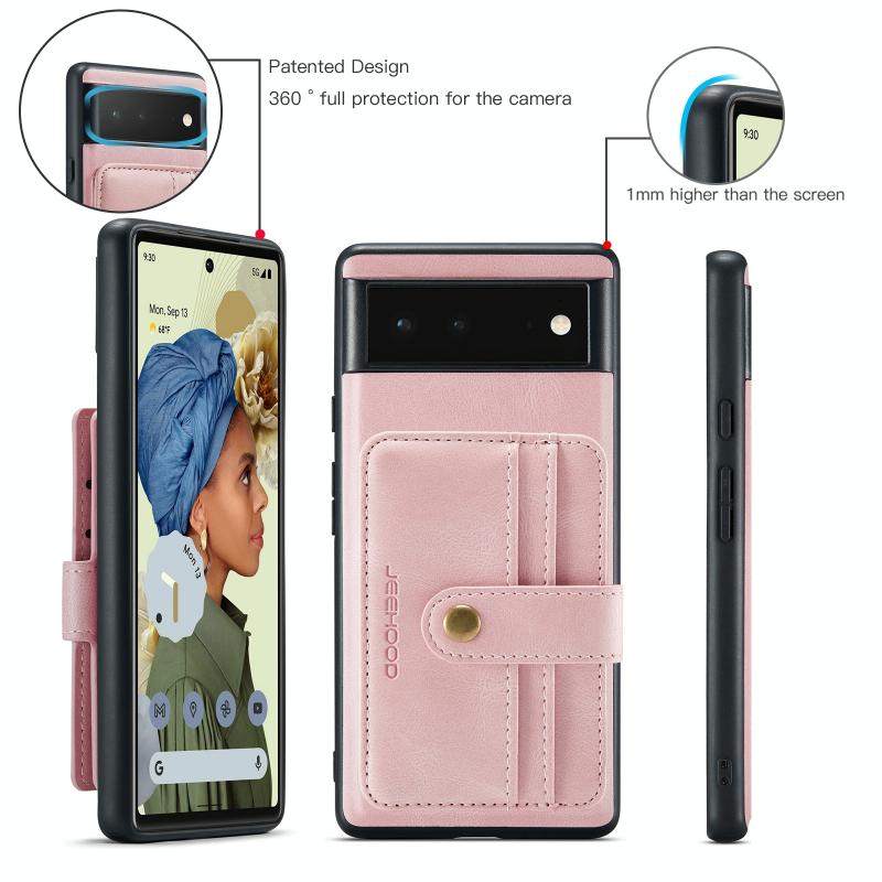 For Google Pixel 6 JEEHOOD RFID Blocking Anti-Theft Wallet Phone Case(Pink) (JEEHOOD)