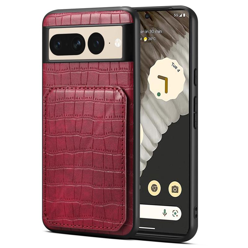 For Google Pixel 7 Pro Denior Crocodile Texture Holder Electroplating Phone Case(Red) (Denior)