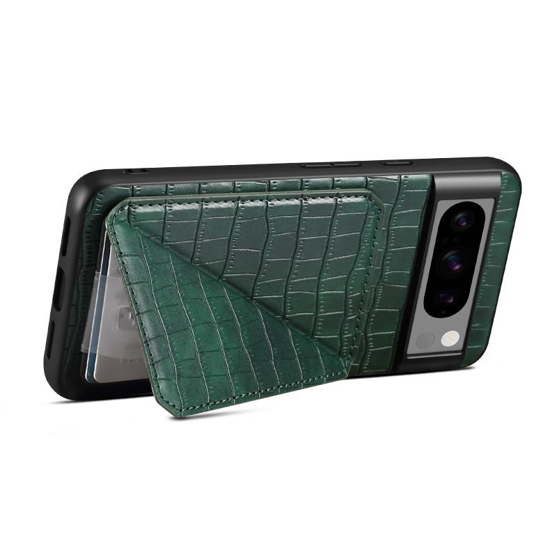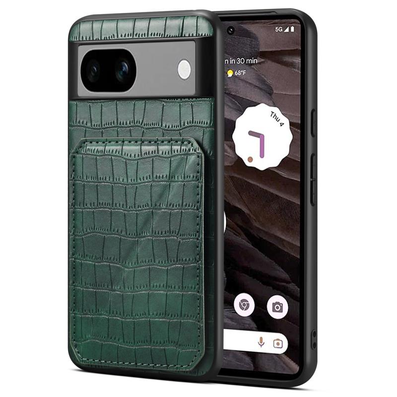For Google Pixel 7a Denior Crocodile Texture Holder Electroplating Phone Case(Green) (Denior)