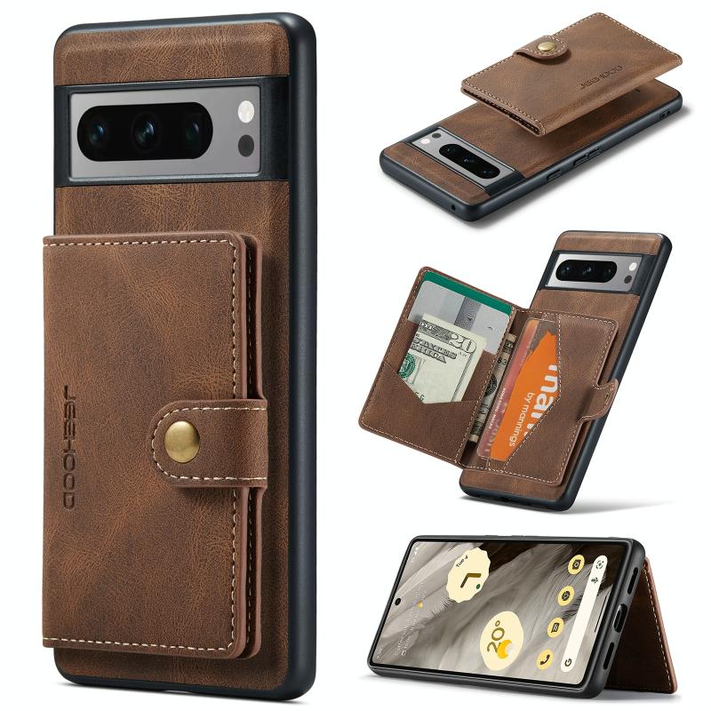 For Google Pixel 8 Pro JEEHOOD Retro Magnetic Detachable Wallet Phone Case(Brown) (JEEHOOD)