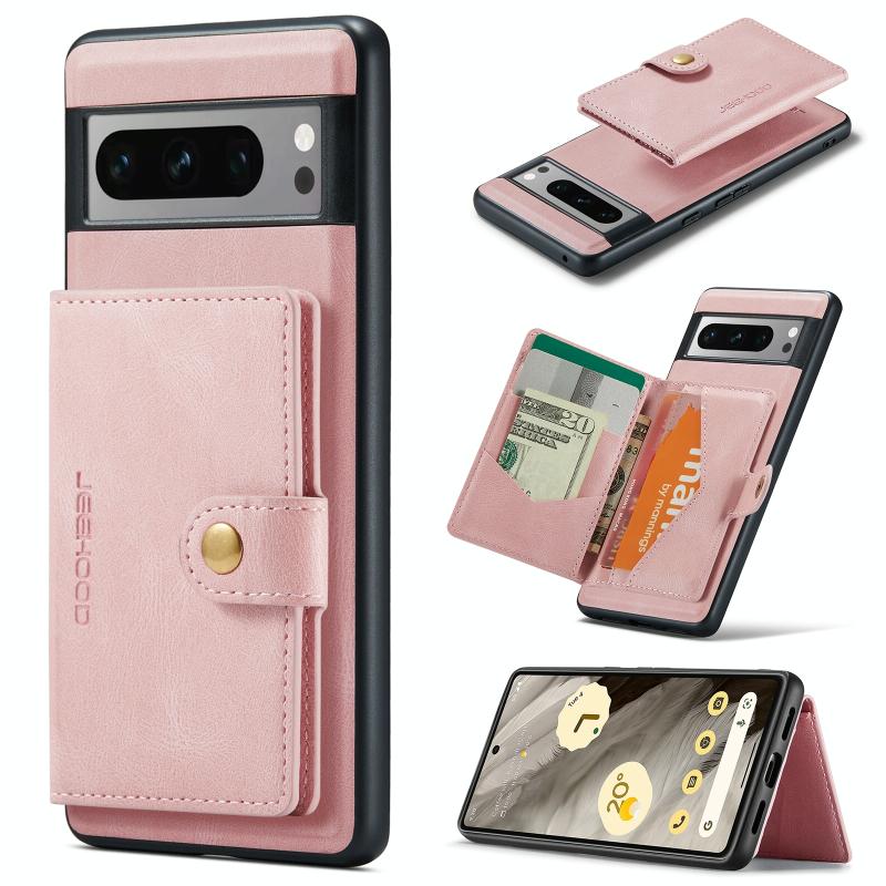 For Google Pixel 8 Pro JEEHOOD Retro Magnetic Detachable Wallet Phone Case(Pink) (JEEHOOD)