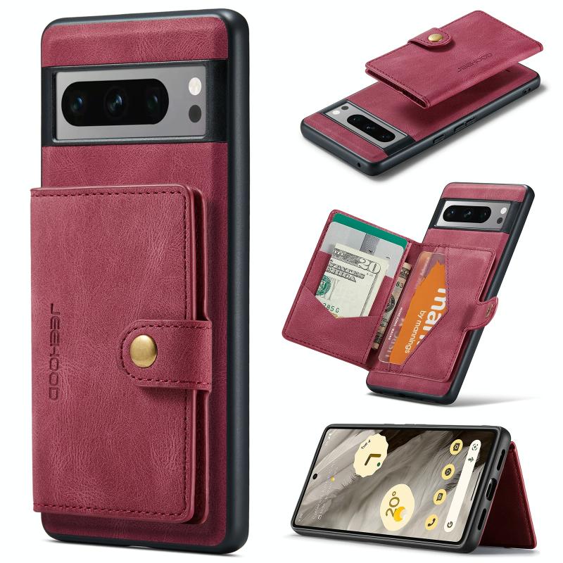 For Google Pixel 8 Pro JEEHOOD Retro Magnetic Detachable Wallet Phone Case(Red) (JEEHOOD)