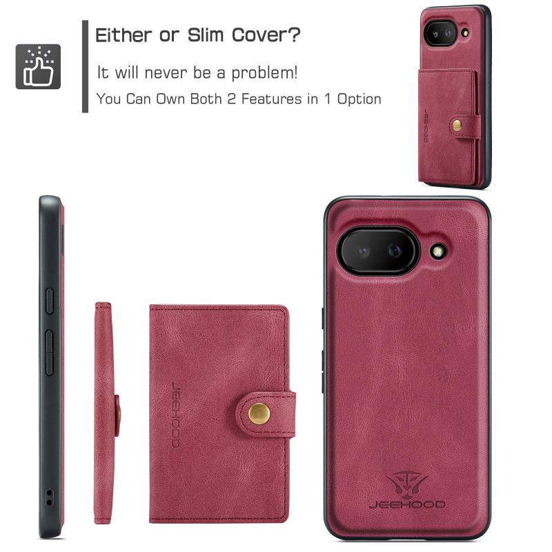 For Google Pixel 9a JEEHOOD J01 Retro Magnetic Detachable Wallet Phone Case(Red) (JEEHOOD)