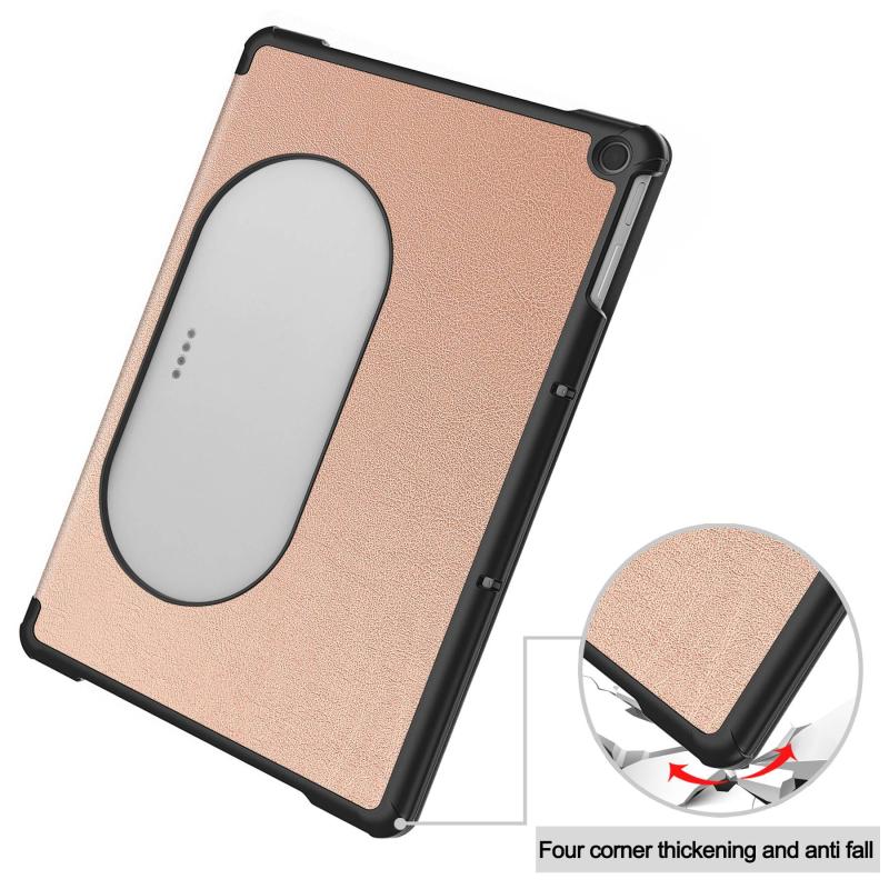 For Google Pixel Tablet Custer Pure Color 3-Fold Holder Smart Leather Tablet Case(Rose Gold)