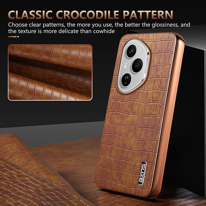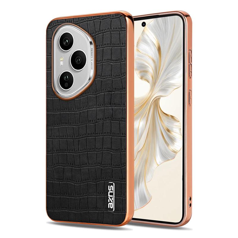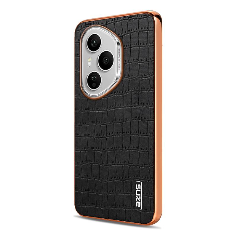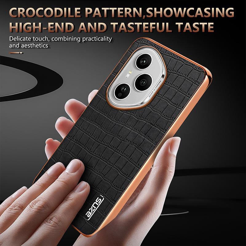 For Honor 400 Pro Global 160.8mm AZNS Electroplated Frame Crocodile Texture Full Coverage Phone Case(Black) (AZNS)