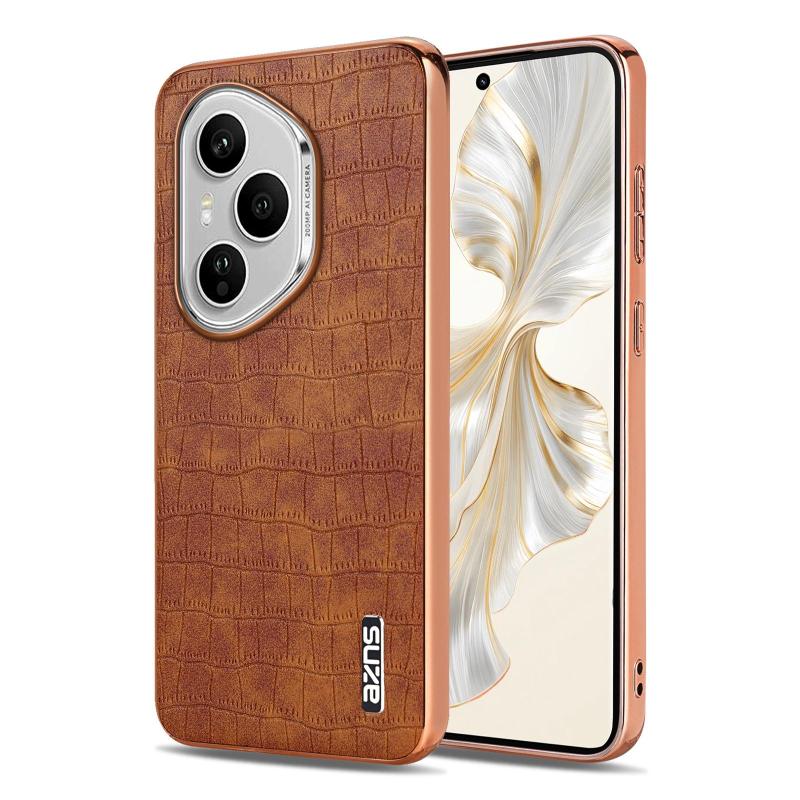 For Honor 400 Pro Global 160.8mm AZNS Electroplated Frame Crocodile Texture Full Coverage Phone Case(Brown) (AZNS)