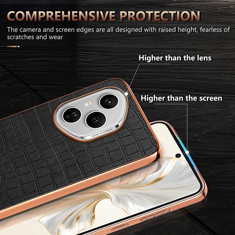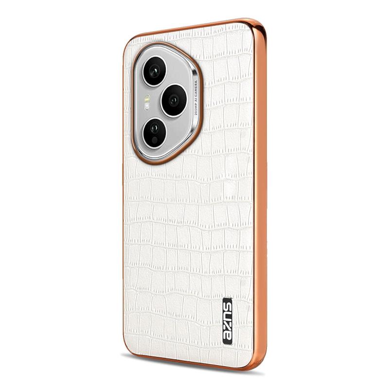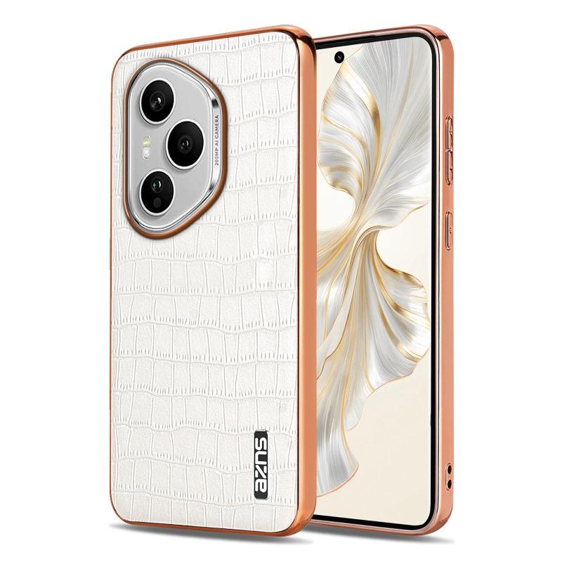 For Honor 400 Pro Global 160.8mm AZNS Electroplated Frame Crocodile Texture Full Coverage Phone Case(White) (AZNS)
