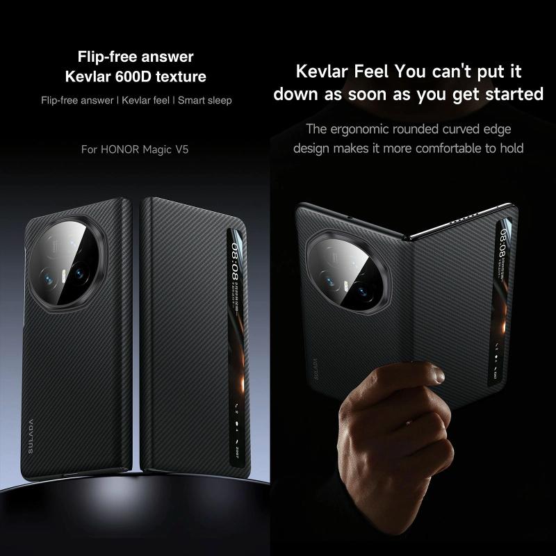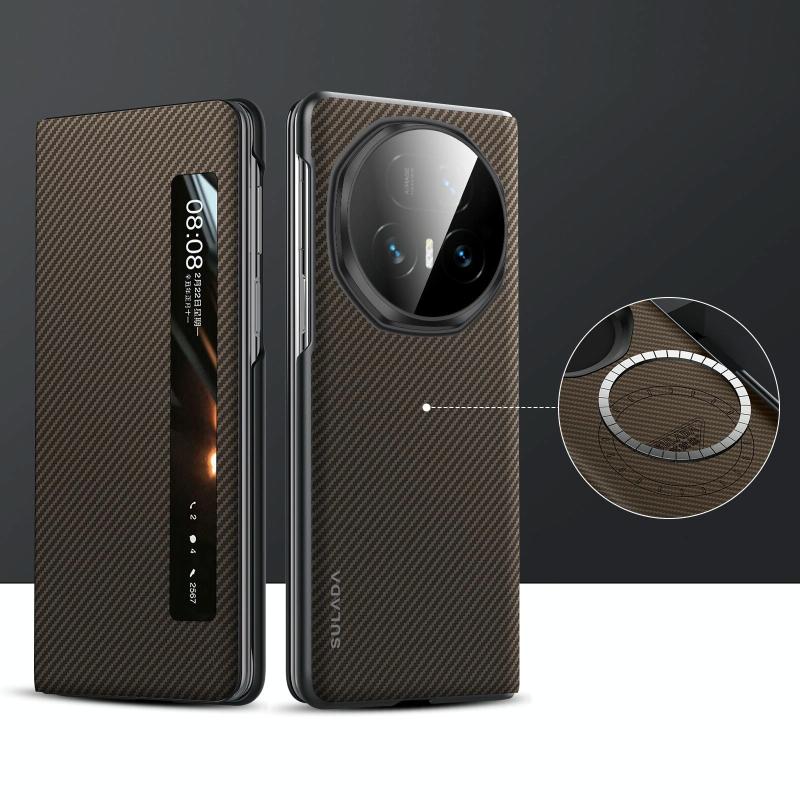 For Honor Magic V5 SULADA Kevlar 600D Texture Smart Window Leather Phone Case(Brown) (SULADA)