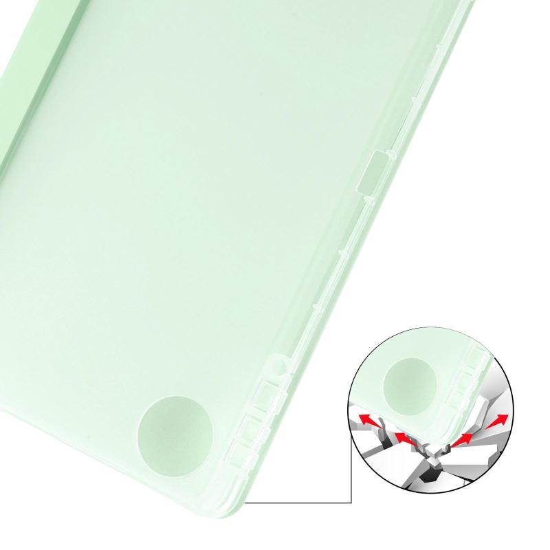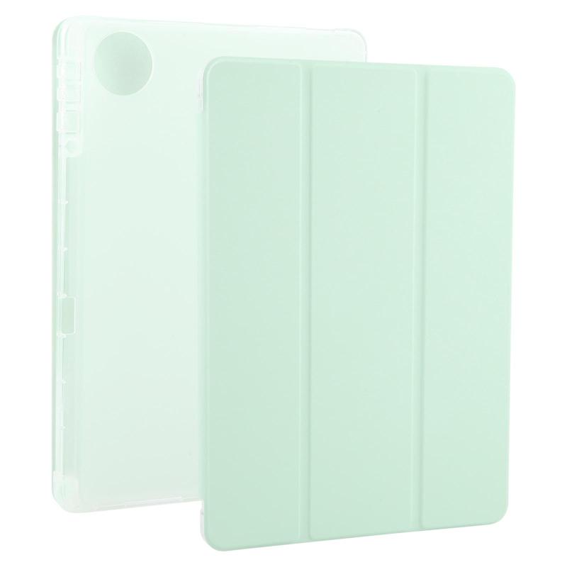 For Honor Pad 10 12.1 3-fold Clear TPU Smart Leather Tablet Case with Pen Slot(Light Green)