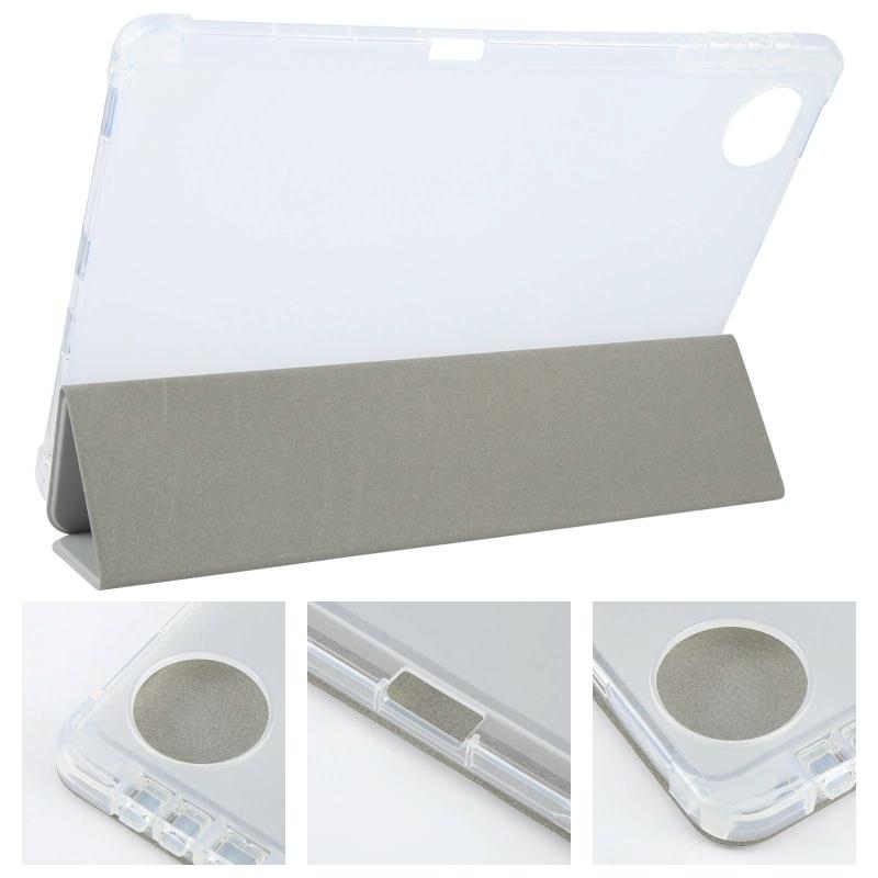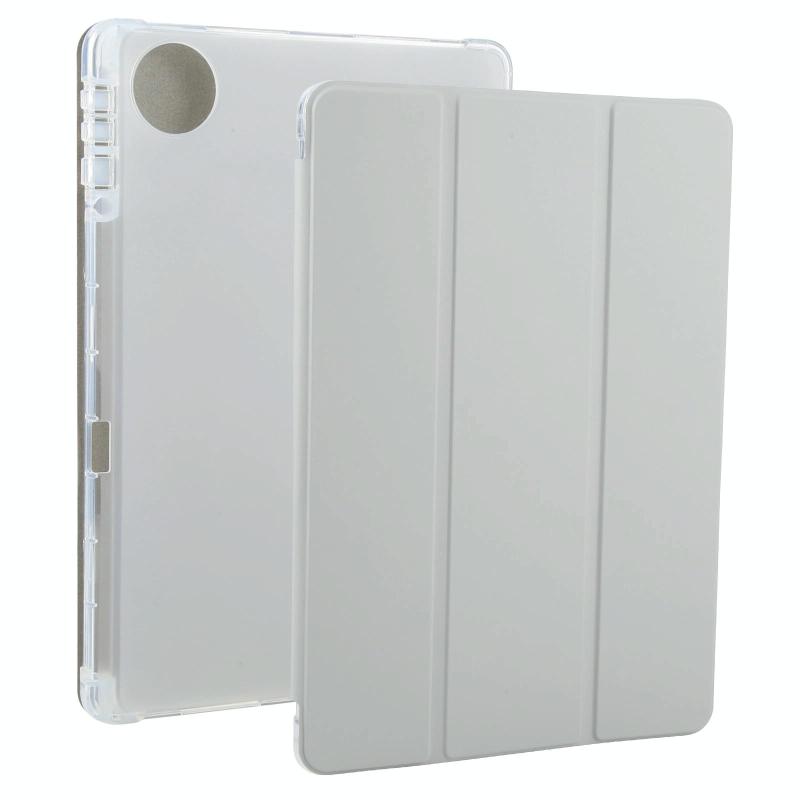 For Honor Pad 10 12.1 3-fold Clear TPU Smart Leather Tablet Case with Pen Slot(Space Gray)
