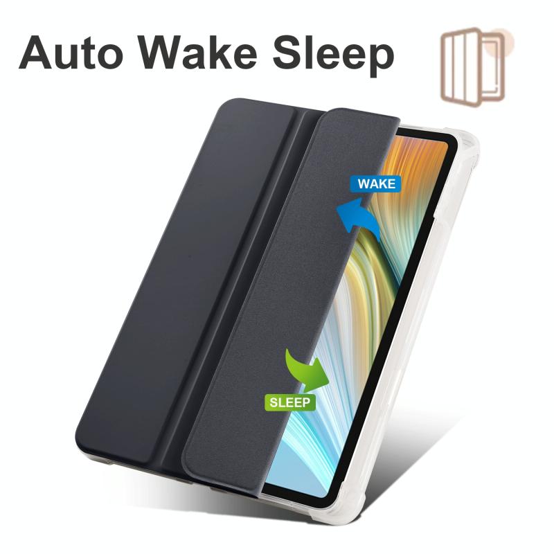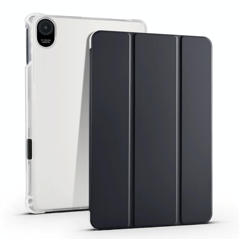 For Honor Pad 8 3-folding Transparent TPU Smart Leather Tablet Case(Black)