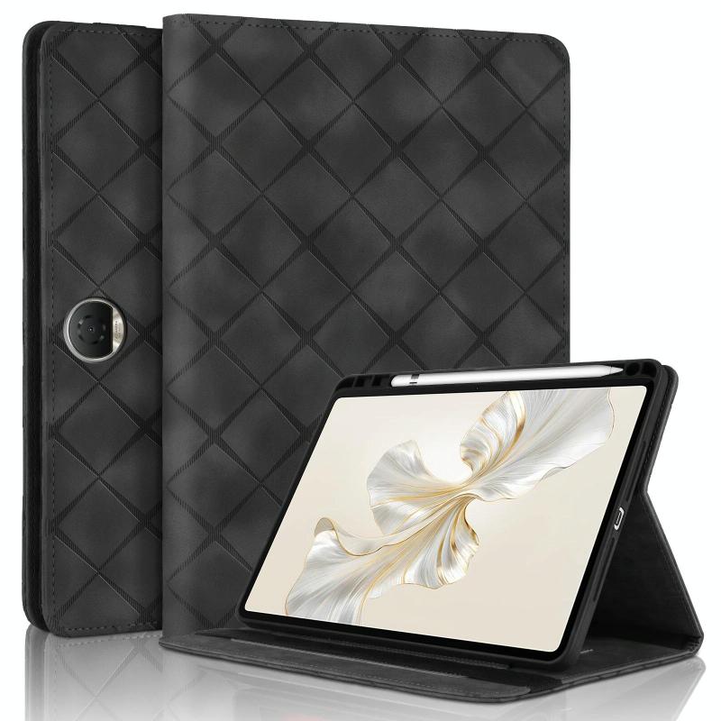 For Honor Pad 9 12.1 2023 Rhombus Embossing Leather Tablet Case(Black)