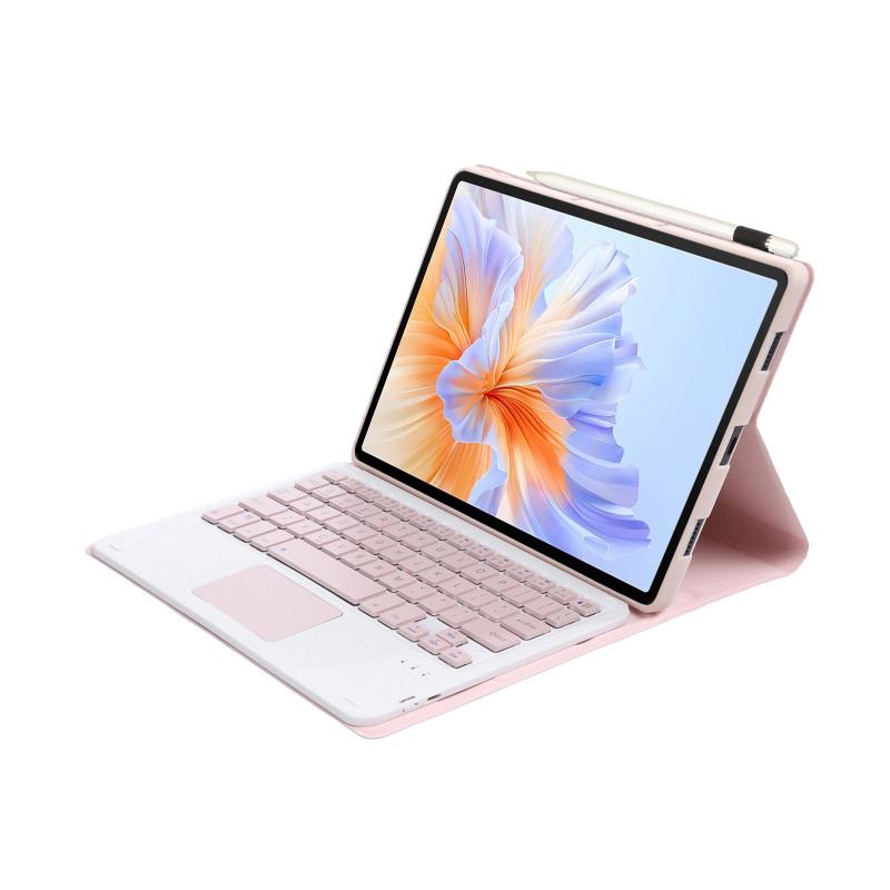 For Honor Pad V9 AH27-A Ultra-thin Detachable Bluetooth Keyboard Leather Tablet Case with Touchpad(Pink White)