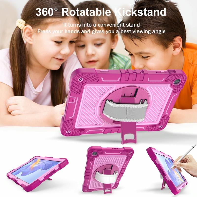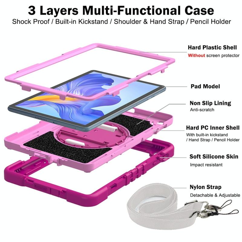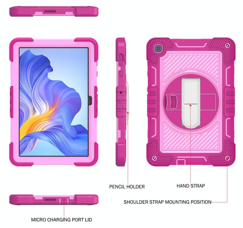 For Honor Pad X8 360 Degree Rotation PC Contrast Silicone Tablet Case(Rose Red + Pink)