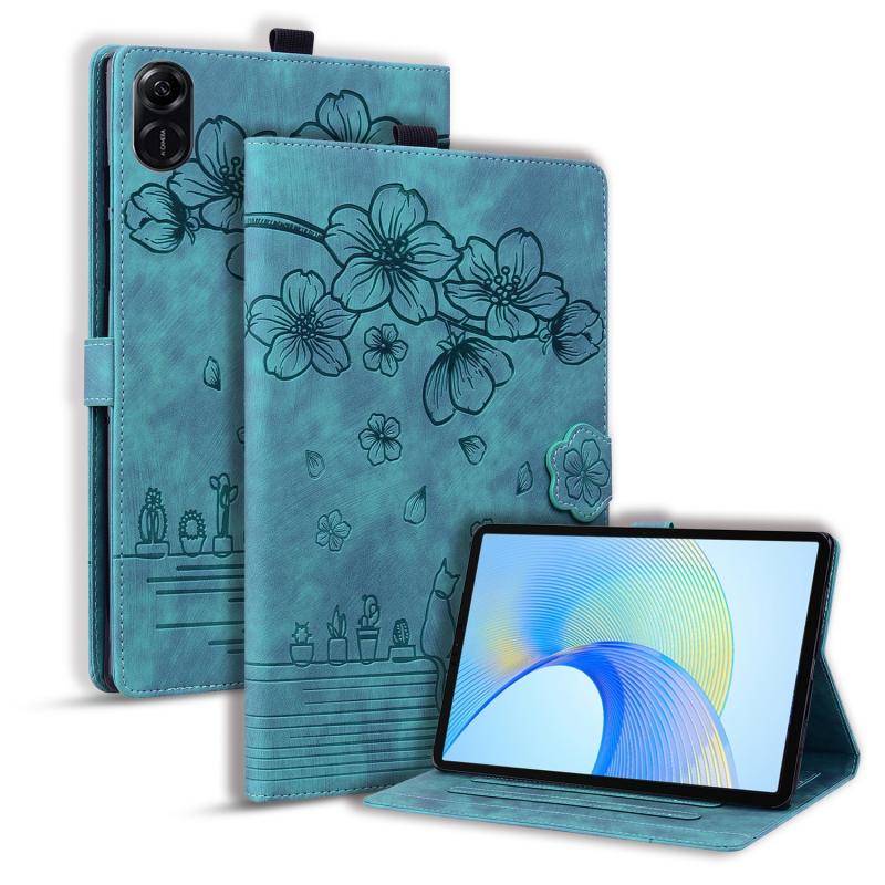 For Honor Pad X9 / X8 Pro Cartoon Sakura Cat Embossed Leather Tablet Case(Green)