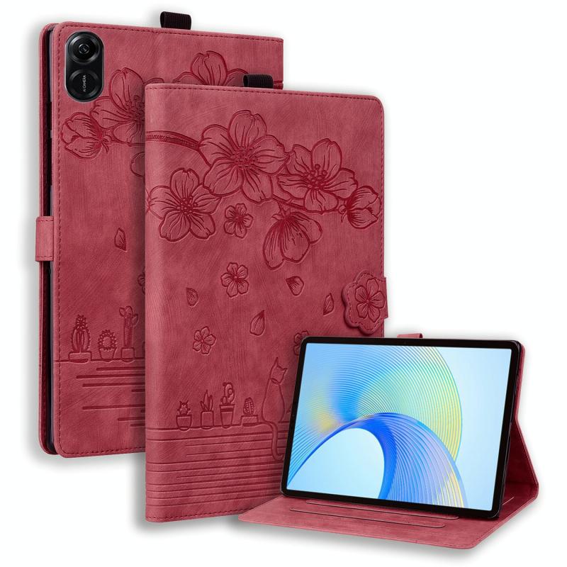 For Honor Pad X9 / X8 Pro Cartoon Sakura Cat Embossed Leather Tablet Case(Red)