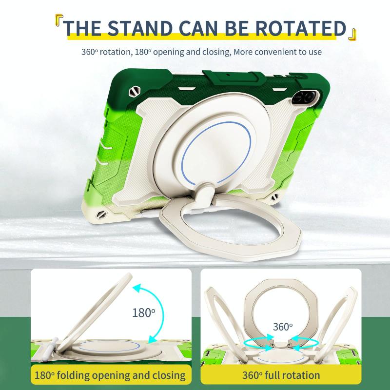 For Honor Pad X9 / X8a Armor Portable Rotating Ring Holder Silicone Tablet Case(Colorful Green)