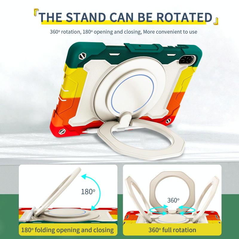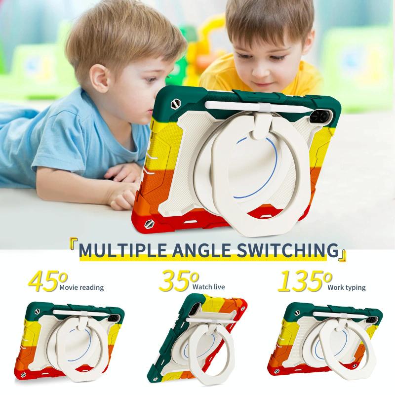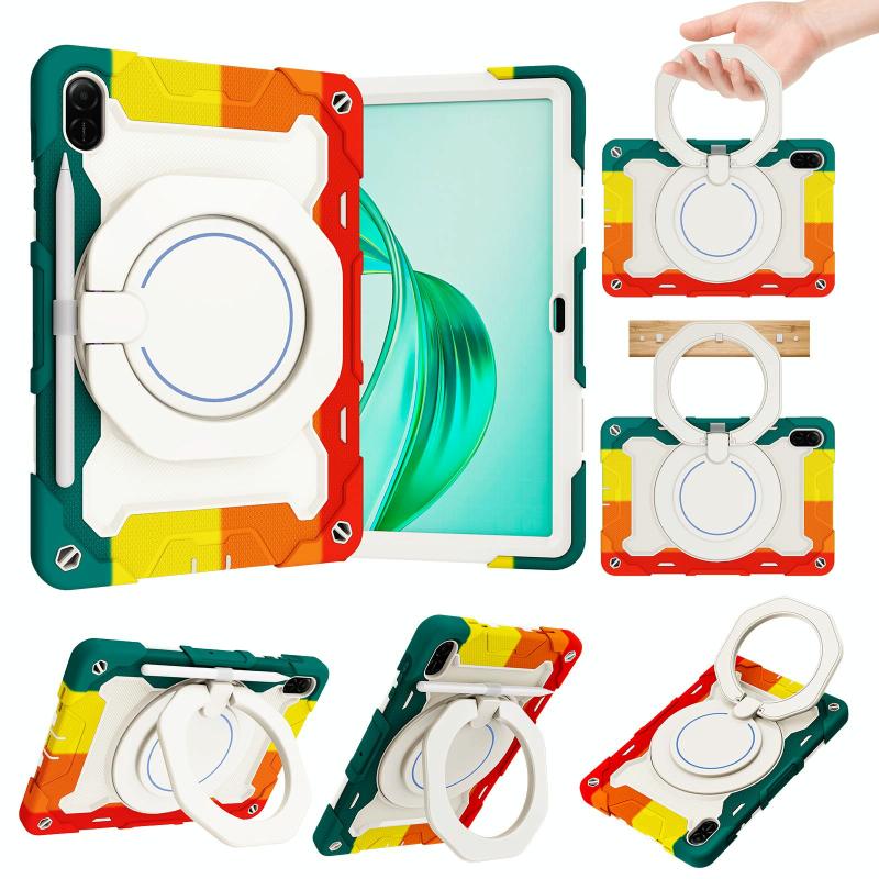 For Honor Pad X9 / X8a Armor Portable Rotating Ring Holder Silicone Tablet Case(Colorful Red)