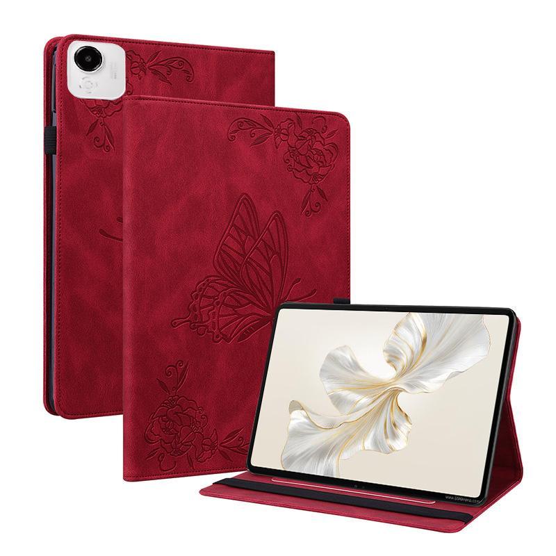 For Honor Pad X9a Butterfly Flower Embossed Leather Tablet Case(Red)