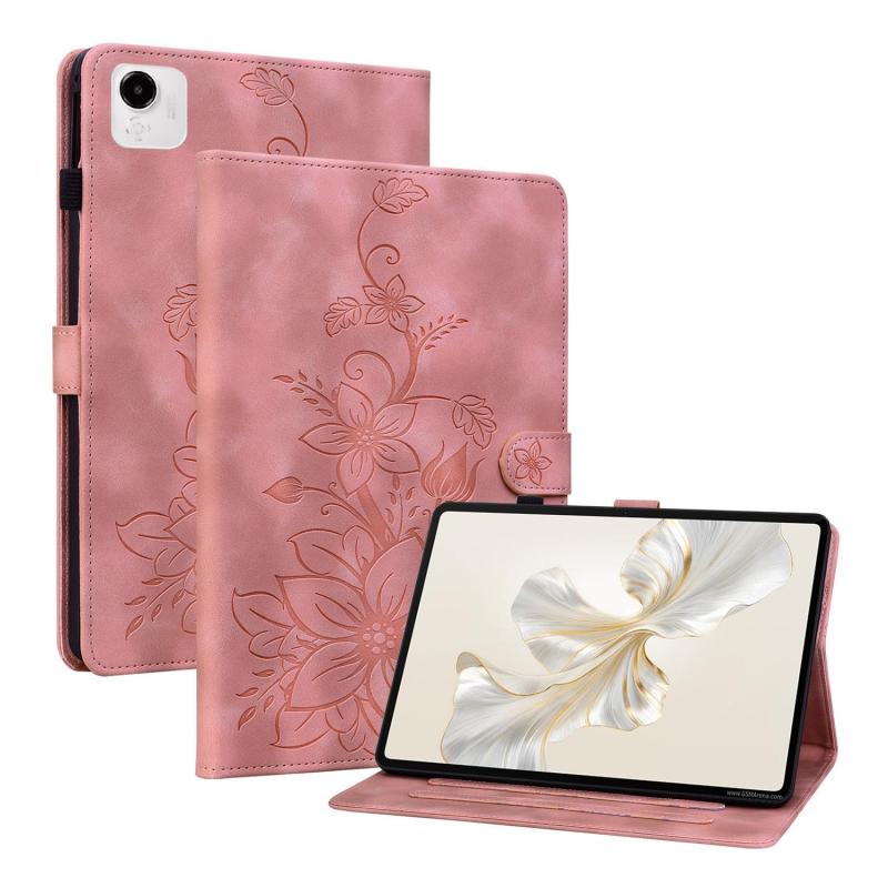 For Honor Pad X9a Lily Embossed Leather Tablet Case(Pink)
