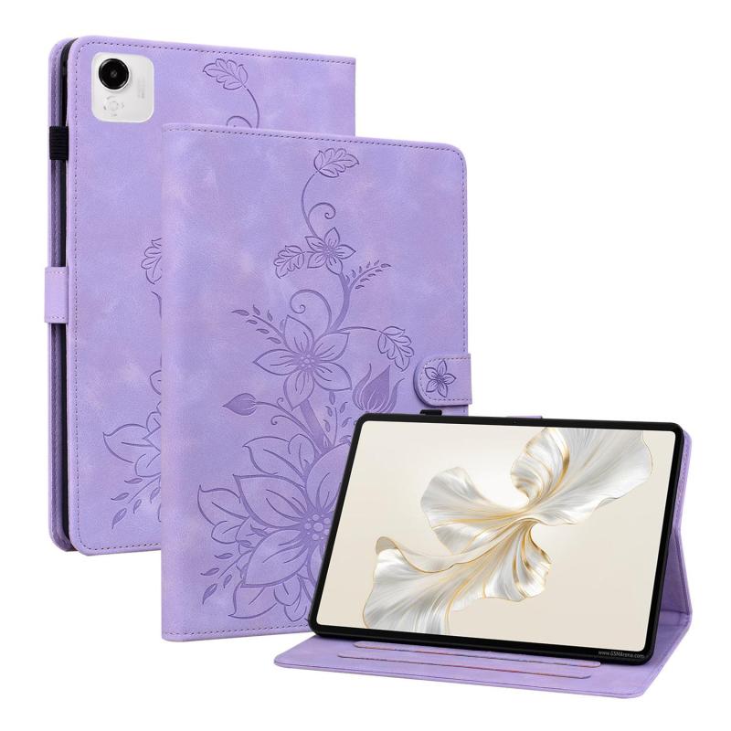 For Honor Pad X9a Lily Embossed Leather Tablet Case(Purple)