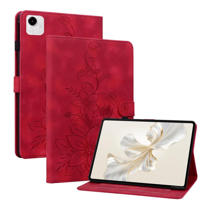 For Honor Pad X9a Lily Embossed Leather Tablet Case(Red)