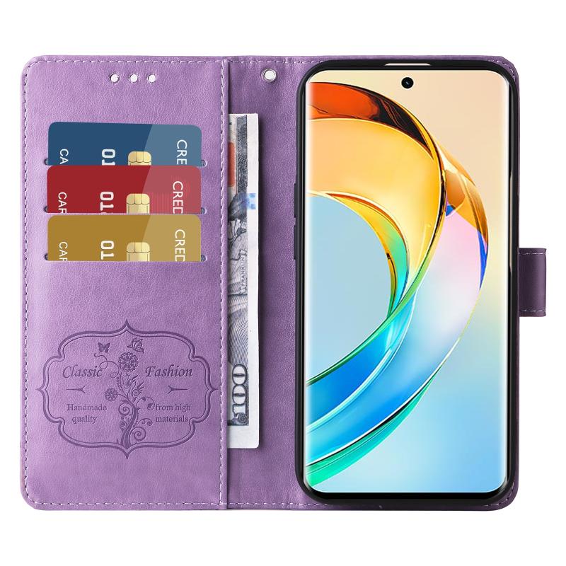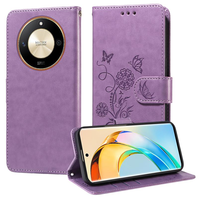 For Honor X50 / X9b / Magic6 Lite Embossed Butterfly Flowers Leather Phone Case(Purple)