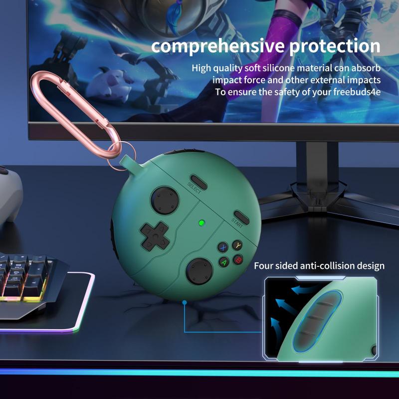 For Huawei Freebuds 4 / 4e Retro Game Console Style Silicone Earbuds Case(Pine Green)