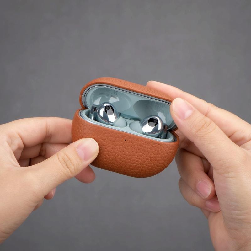 For Huawei FreeBuds Pro 4 Litchi Print Genuine Leather Bluetooth Headset Protective Case(Dark Blue)