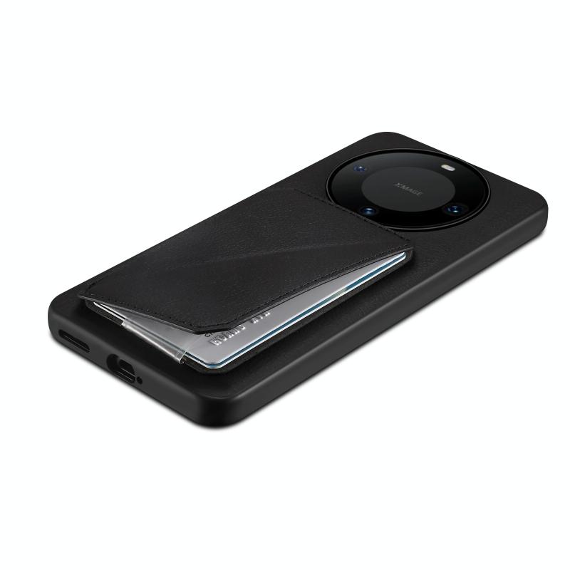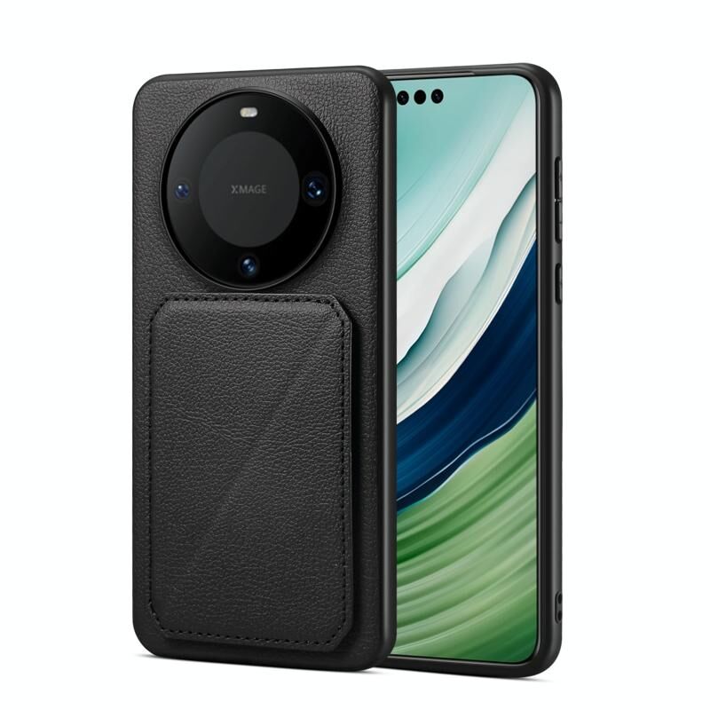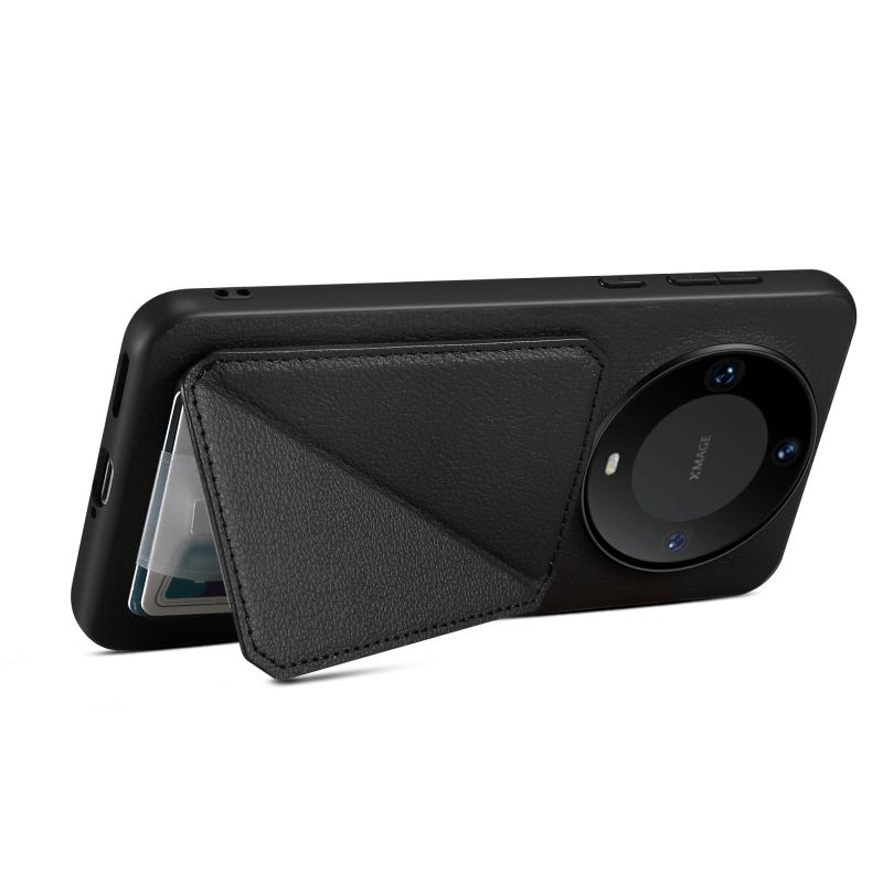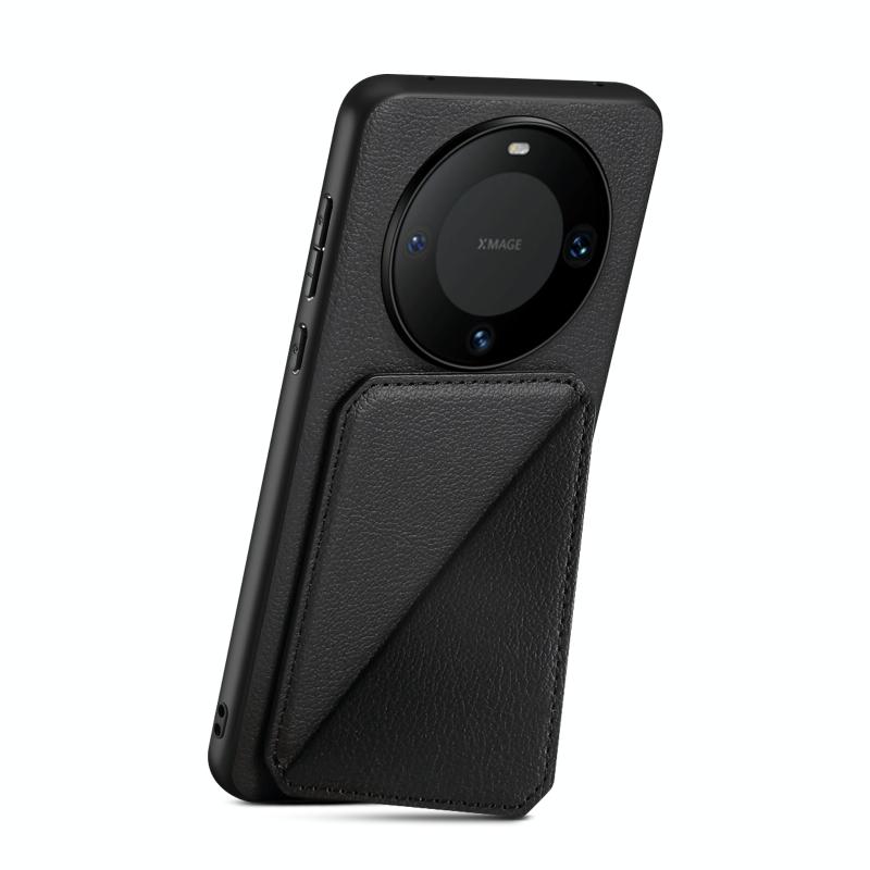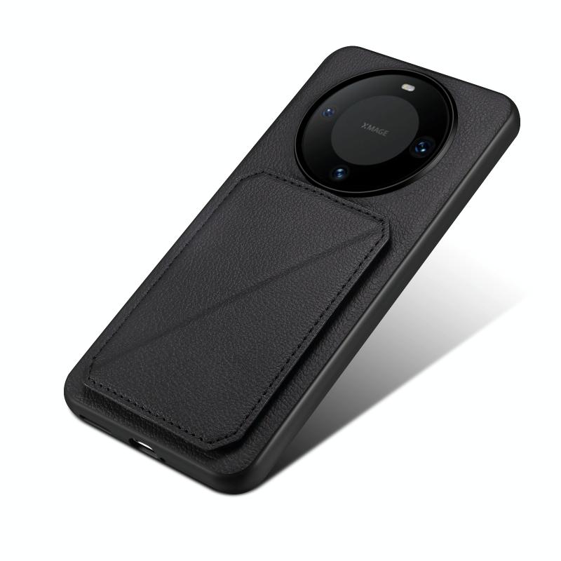 For Huawei Mate 60 Denior Calf Texture Holder Electroplating Phone Case(Black) (Denior)