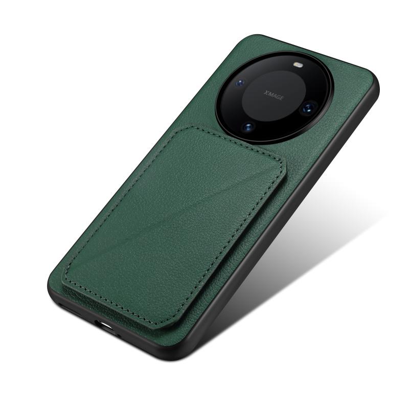 For Huawei Mate 60 Denior Calf Texture Holder Electroplating Phone Case(Green) (Denior)