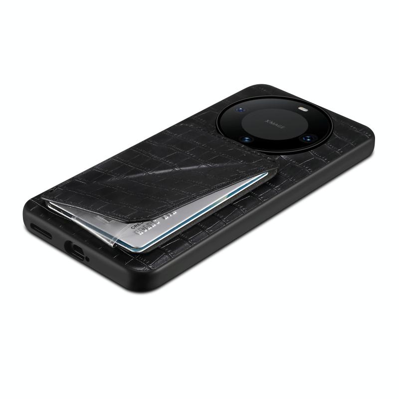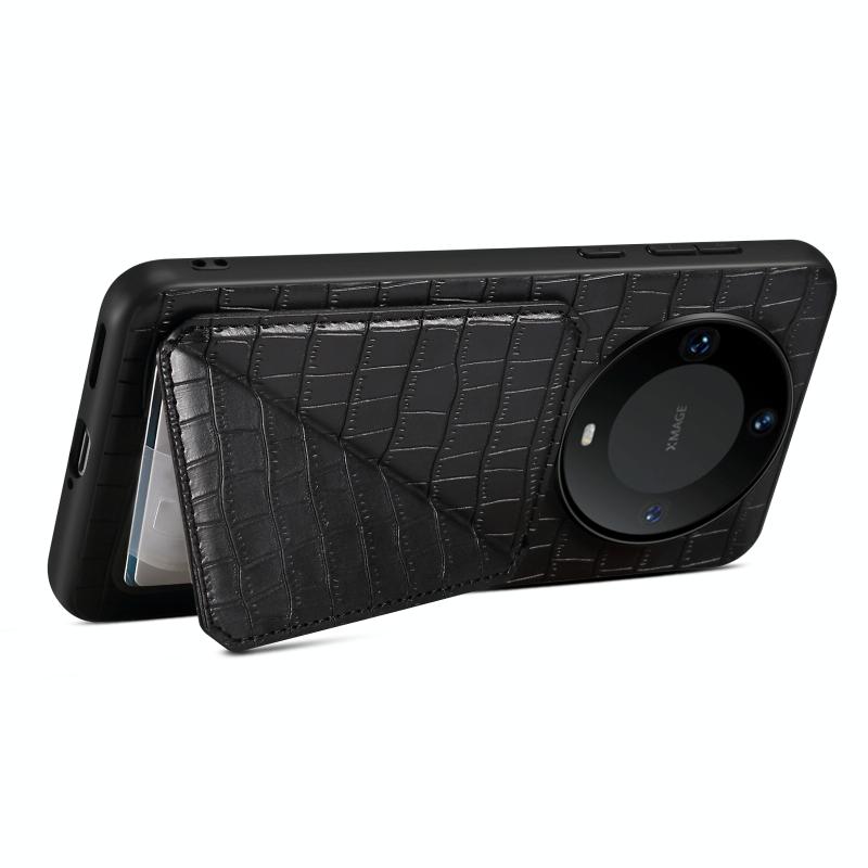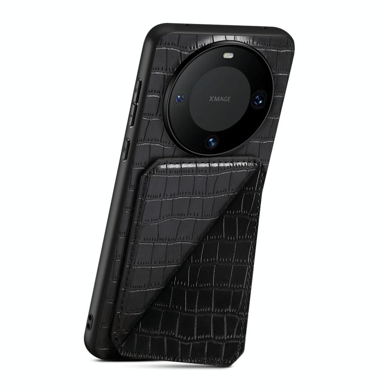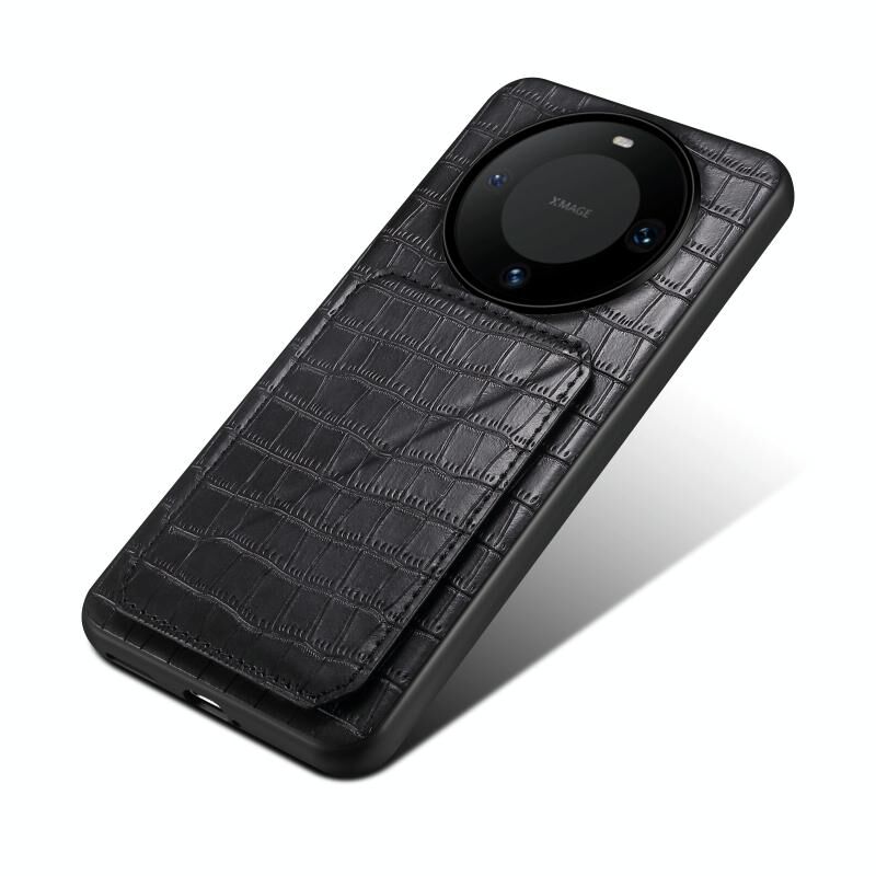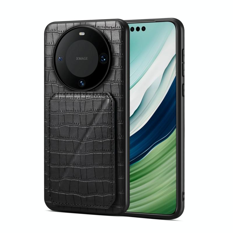 For Huawei Mate 60 Denior Crocodile Texture Holder Electroplating Phone Case(Black) (Denior)