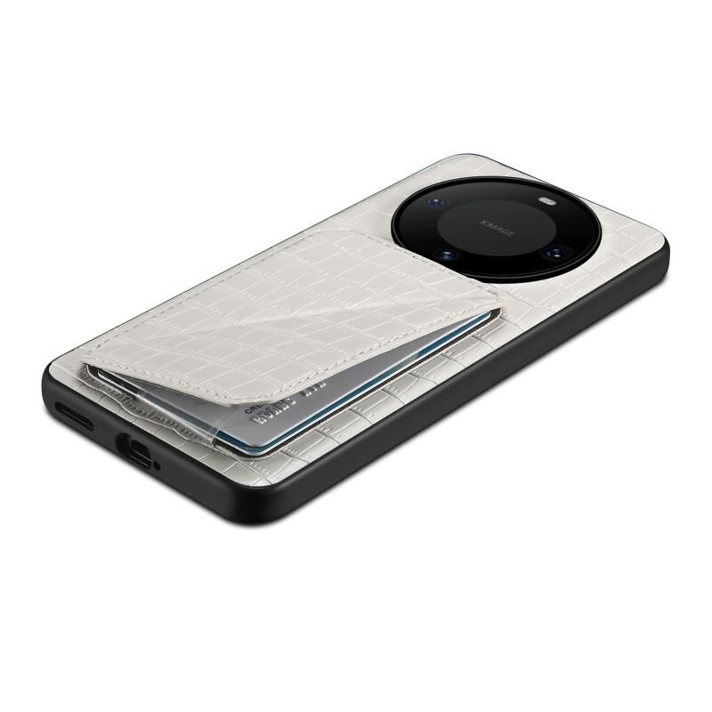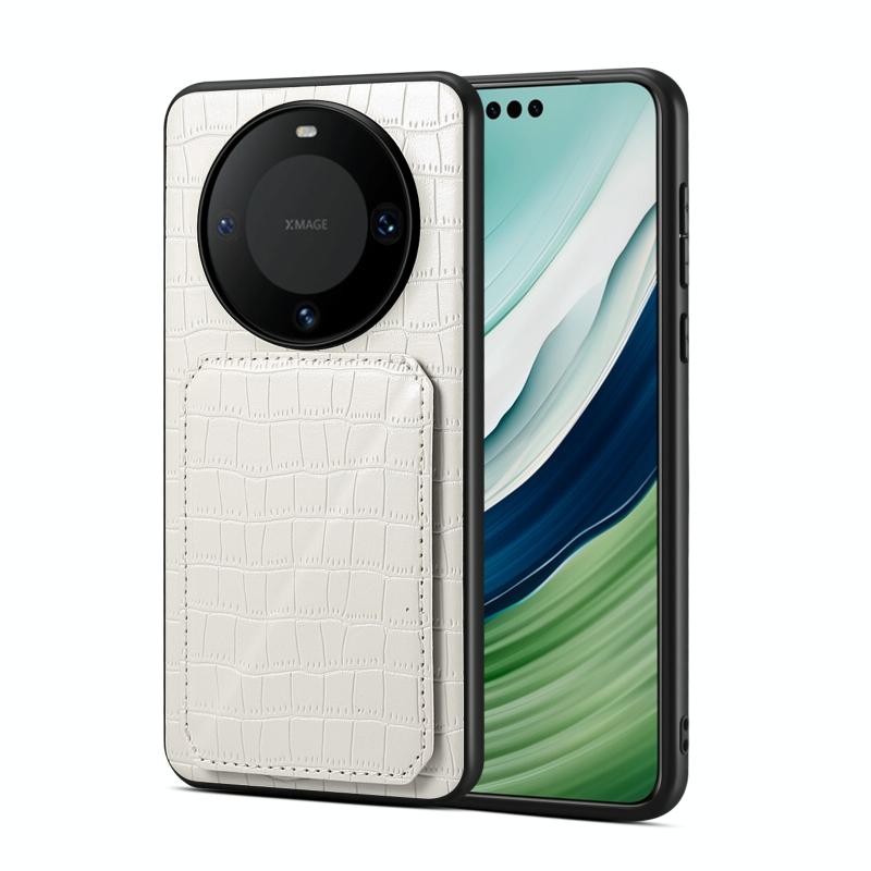 For Huawei Mate 60 Denior Crocodile Texture Holder Electroplating Phone Case(White) (Denior)